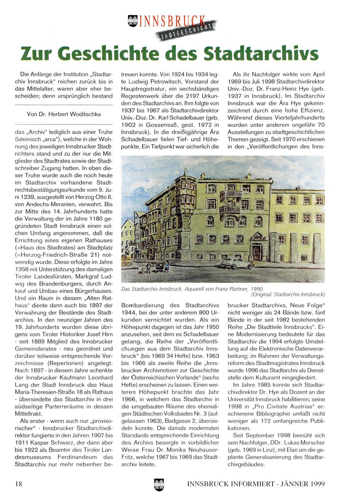 Stadtarchiv die 1994 erfolgte Umstellung auf die Elektronische Datenverarbeitung; im Rahmen der Verwaltungsreform des Stadtmagistrates Innsbruck