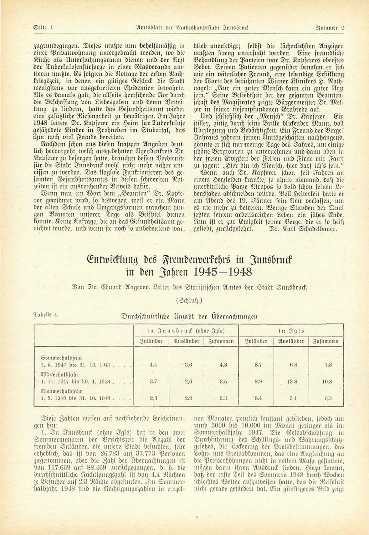 Halbjahr 1948 sind die Nächtiguugszahlen in einzcl