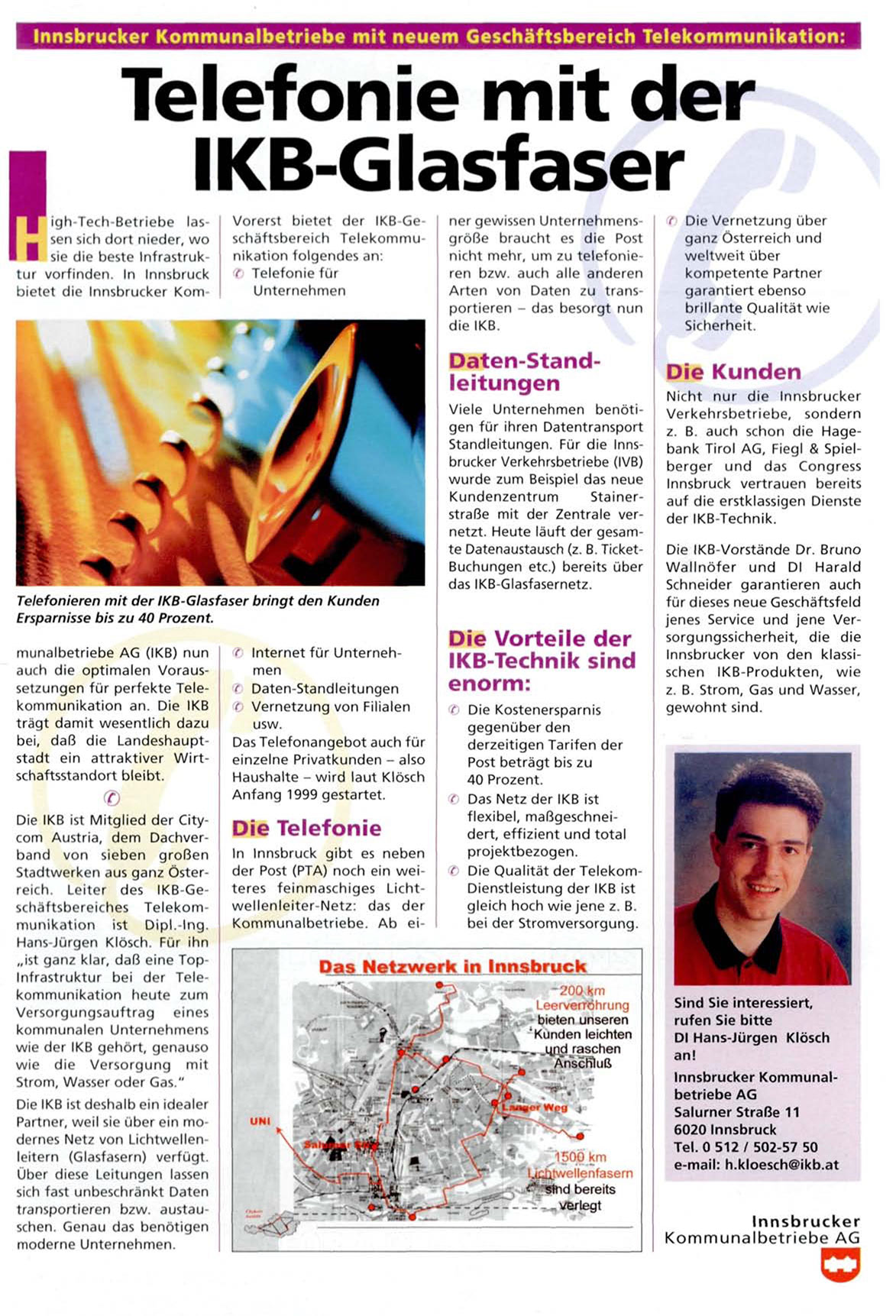 Stadtwerken aus ganz Österreich. Leiter des IKB-Geschäftsbereiches Telekommunikation ist Dipl.-Ing.