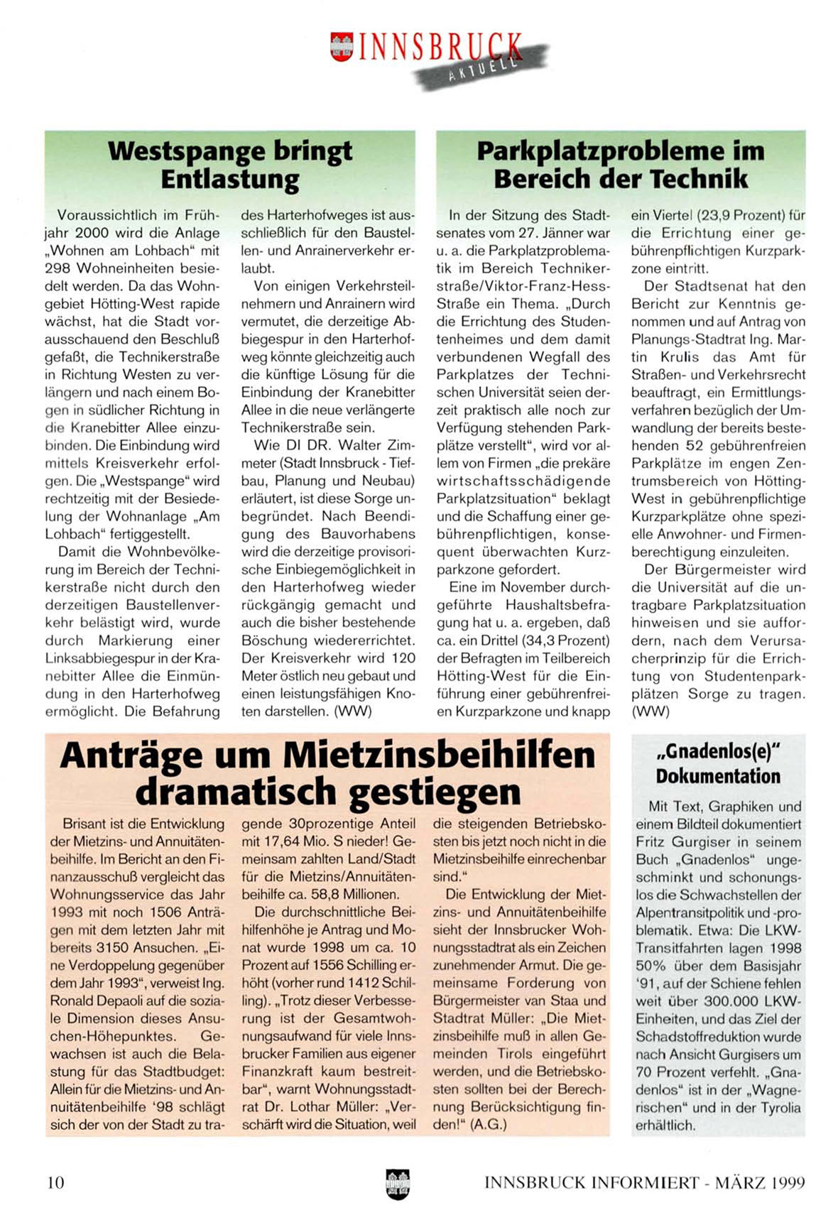 Prozent auf 1556 Schilling erhöht (vorher rund 1412 Schilling). „Trotz dieser Verbesserung ist der Gesamtwohnungsaufwand für viele Innsbrucker Familien aus eigener