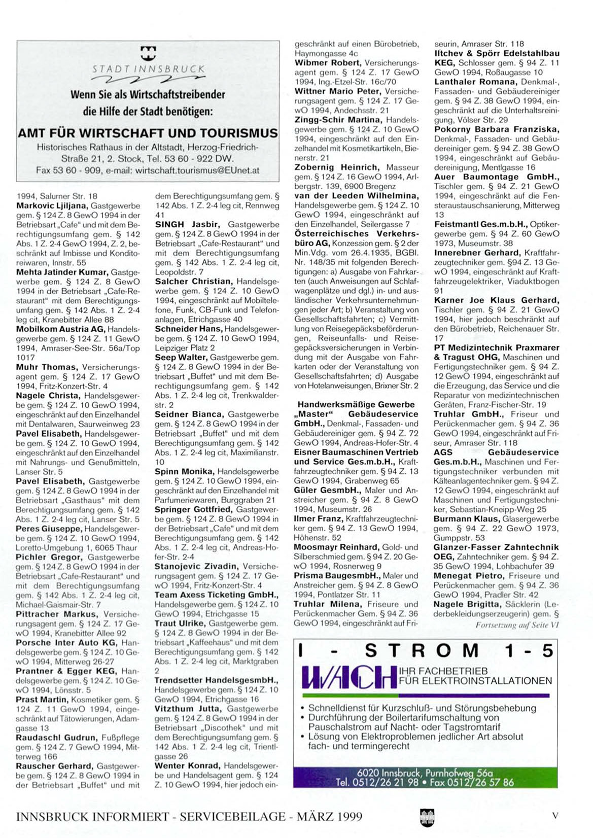 INNSBRUCK INIORMII-R I - SHRVICKBHILAGE - MÄRZ 1999