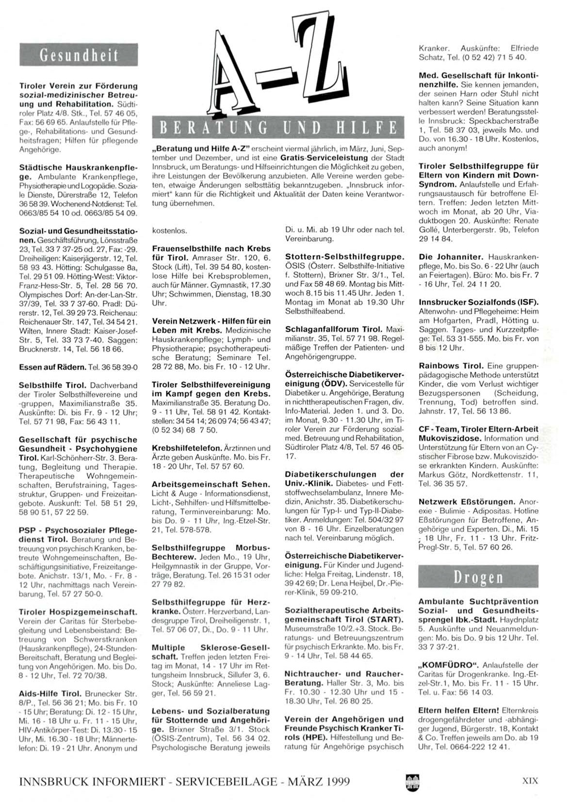 „Beratung und Hilfe A-Z" erscheint viermal jährlich, im März, Juni, September und Dezember, und ist eine Gratis-Serviceleistung der Stadt