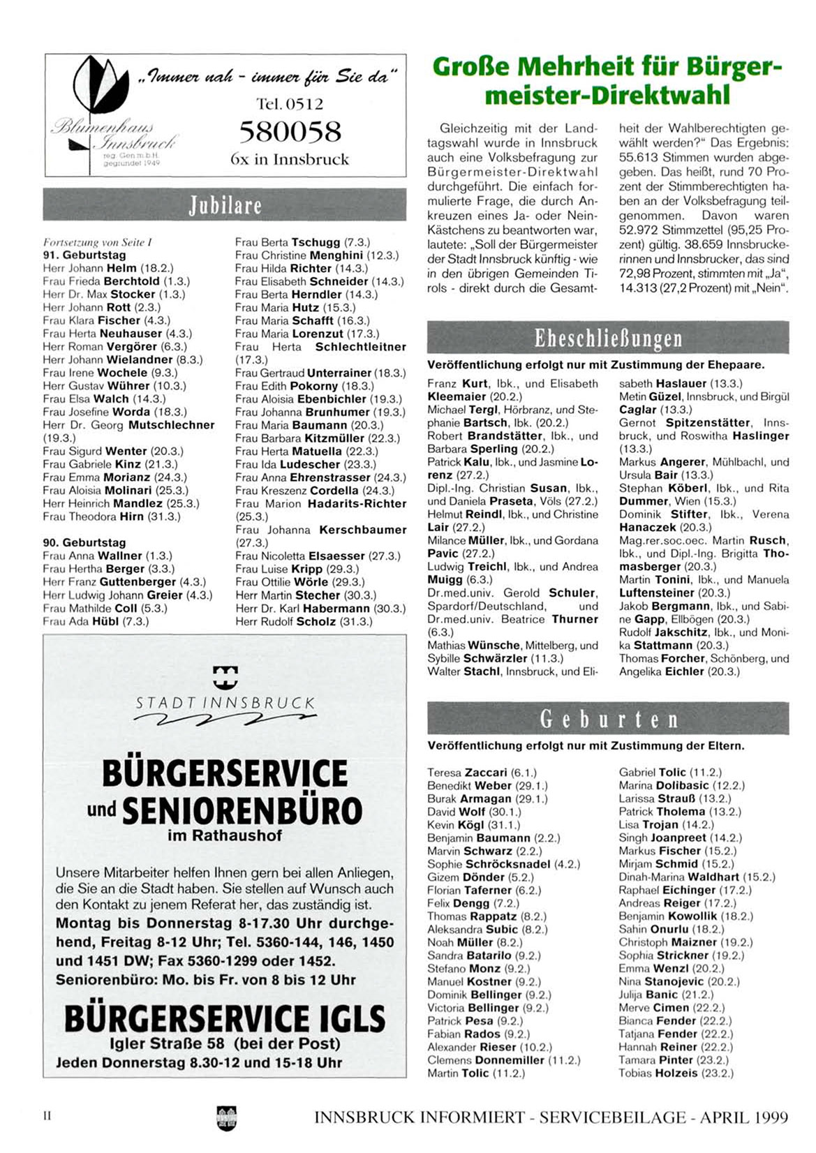 INNSBRUCK INFORMIERT - SERVICEBEILAGE - APRIL 1999