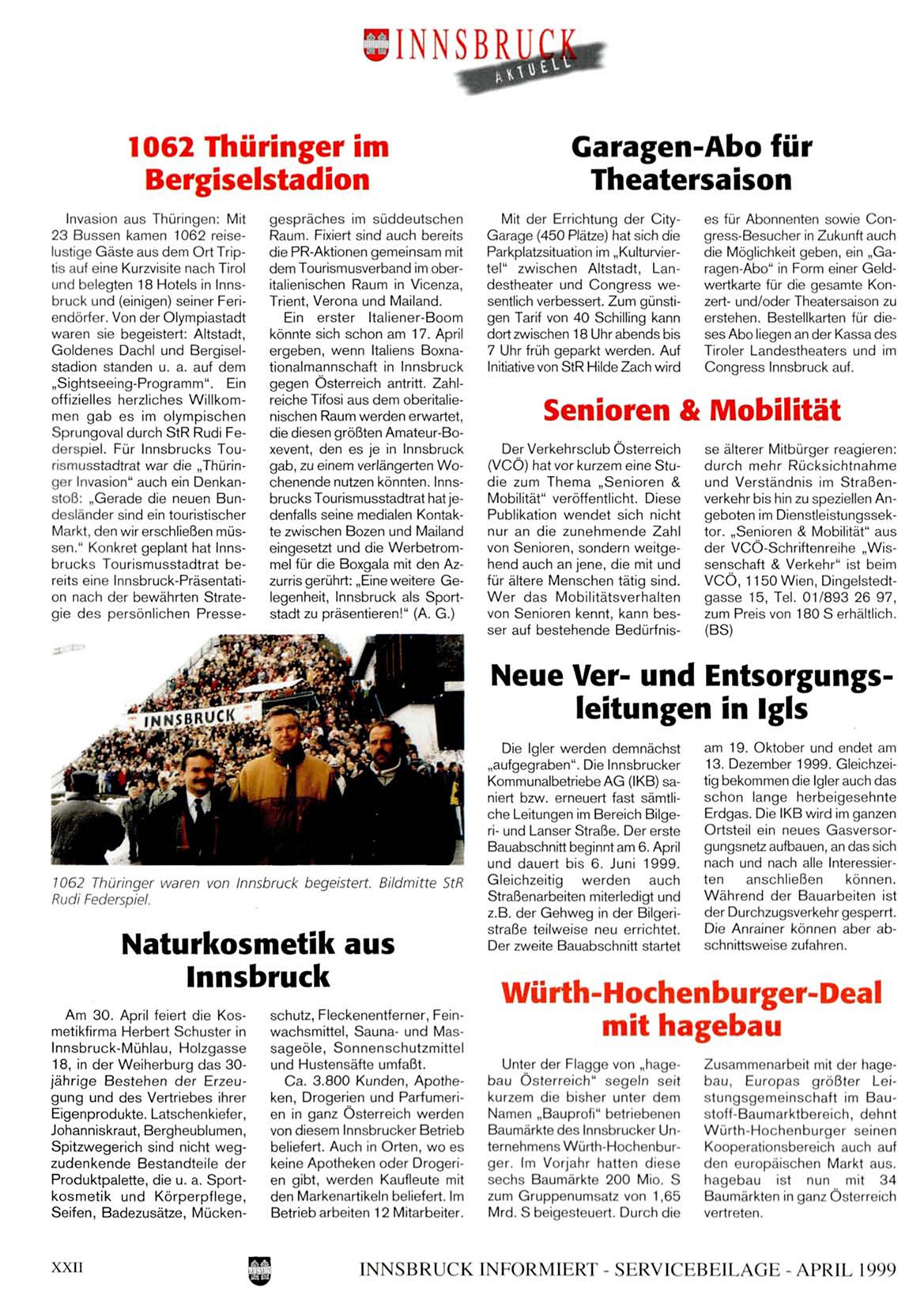 INNSBRUCK INI ORMILRI- SLRVIChBLILAGL -APRIL 1999