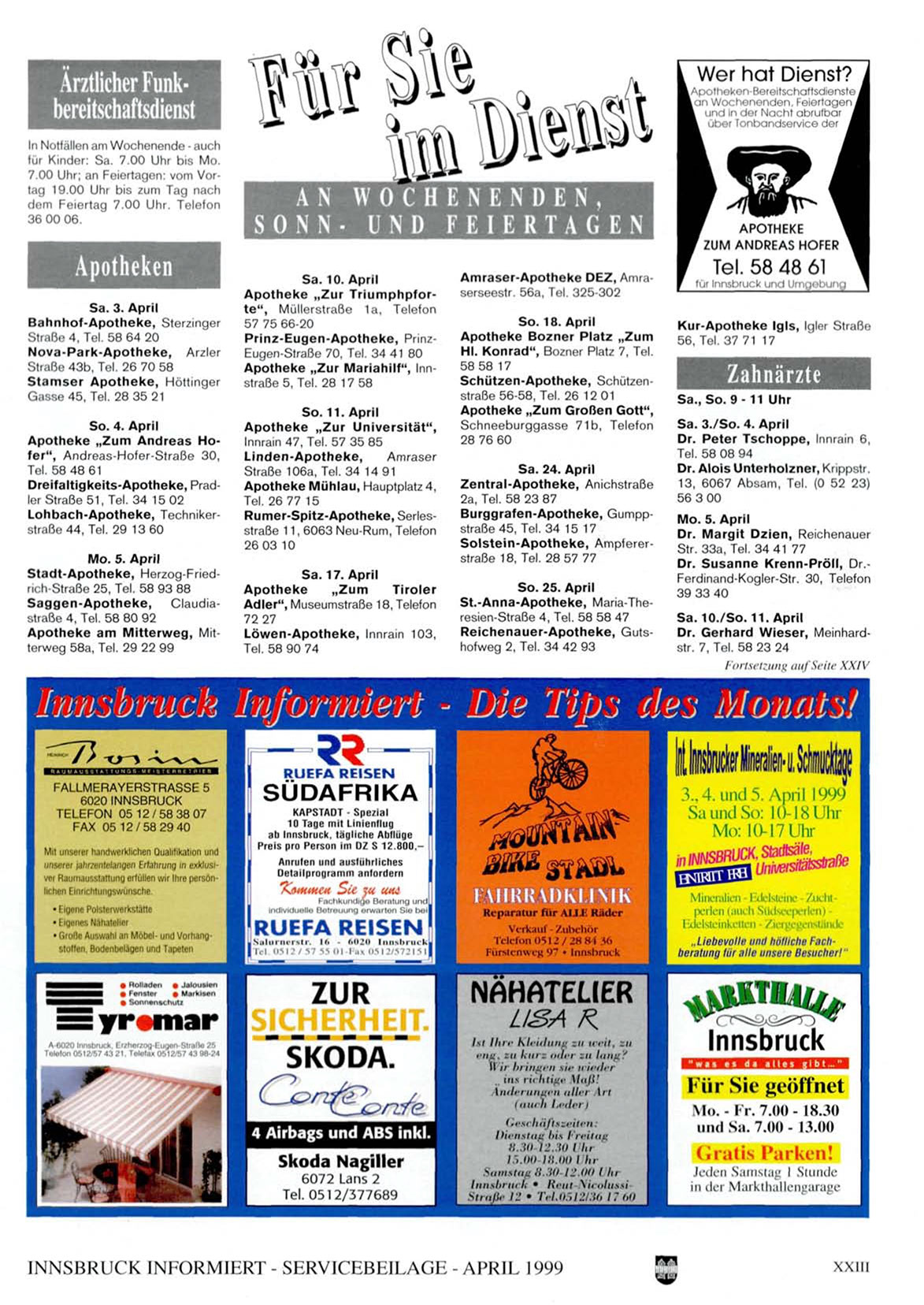 INNSBRUCK INFORMIERT - SERVICEBEILAGH - APRIL 1999