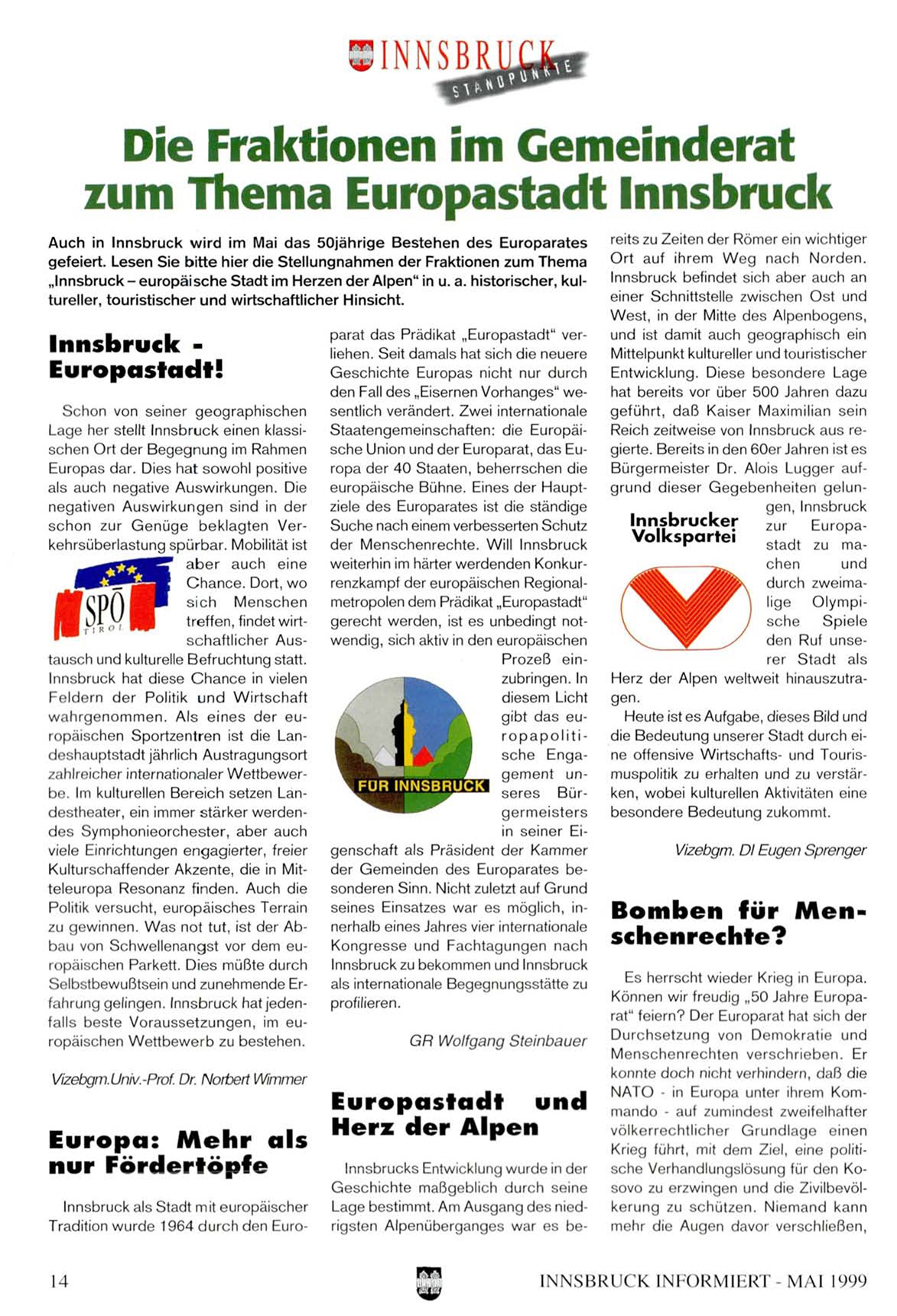 ropa der 40 Staaten, beherrschen die Bürgermeister Dr. Alois Lugger aufgrund dieser Gegebenheiten geluneuropäische Bühne. Eines der Hauptgen, Innsbruck