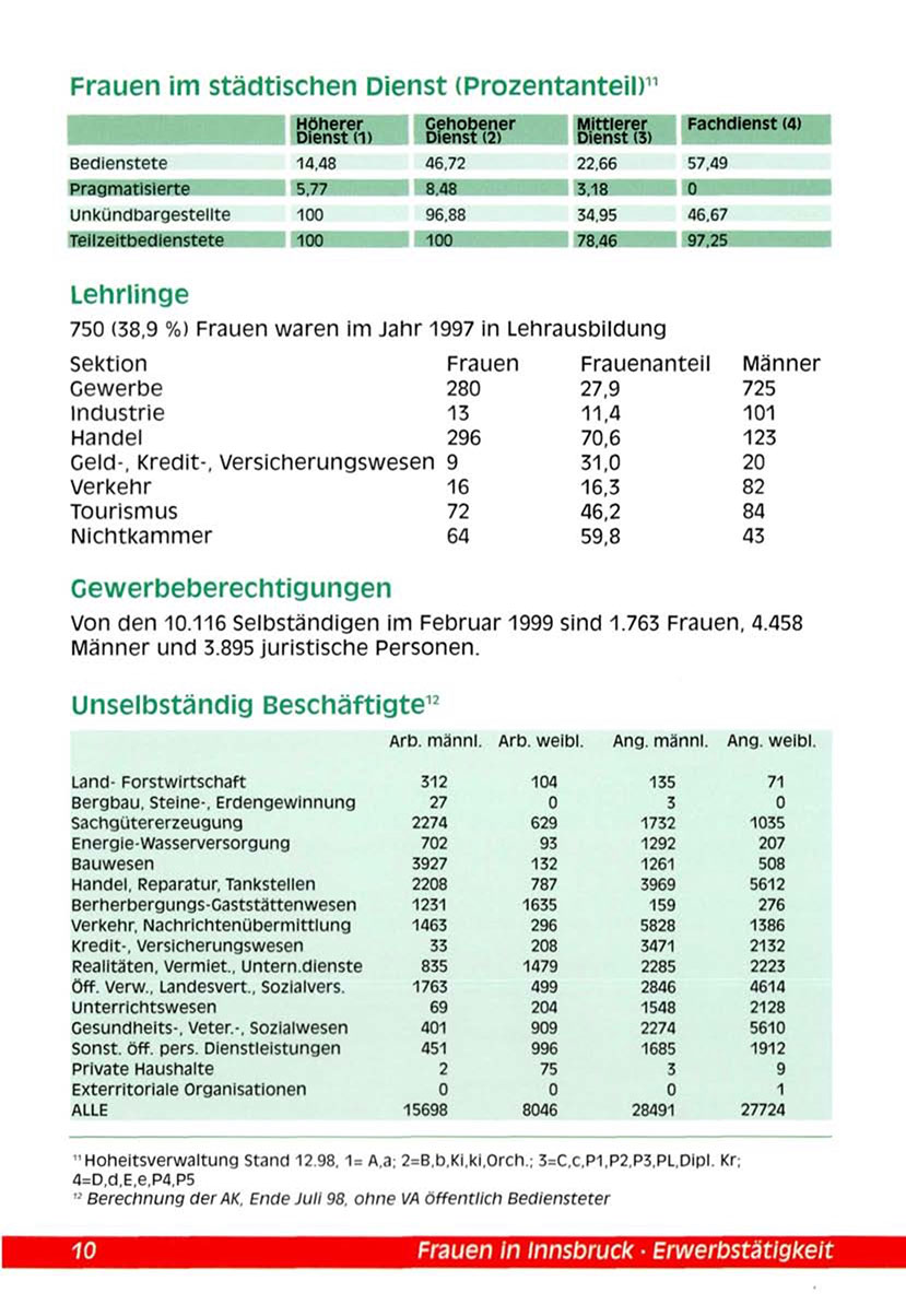 Frauen in Innsbruck • Erwerbstatlgkeit
