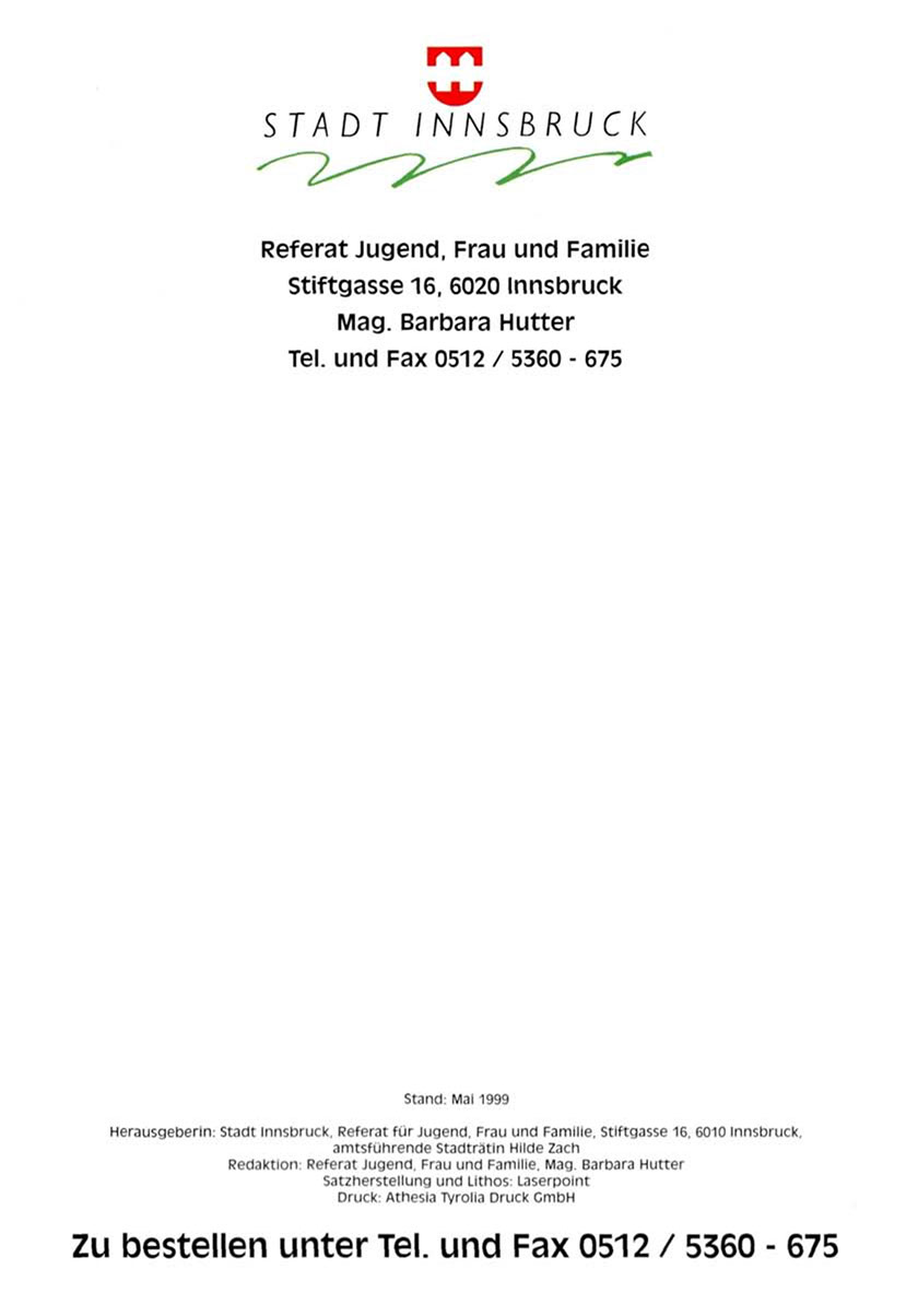 Herausgeberin: Stadt Innsbruck, Referat für Jugend, Frau und Familie, Stiftgasse 16, 6010 Innsbruck,