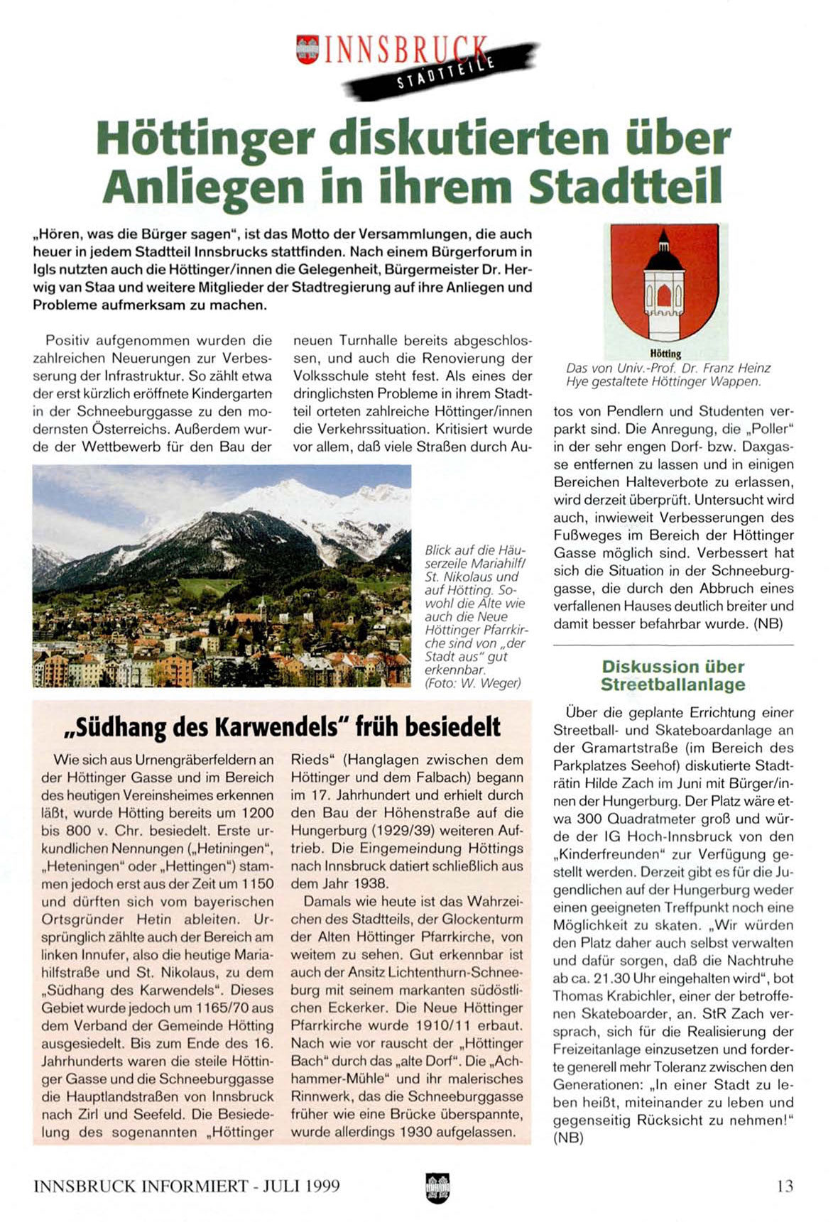 Igls nutzten auch die Höttinger/innen die Gelegenheit, Bürgermeister Dr. Herwig van Staa und weitere Mitglieder der Stadtregierung auf ihre Anliegen und