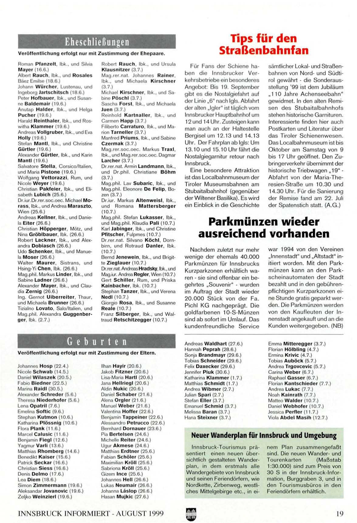 30 S in der Innsbruck-Information, Burggraben 3, und in