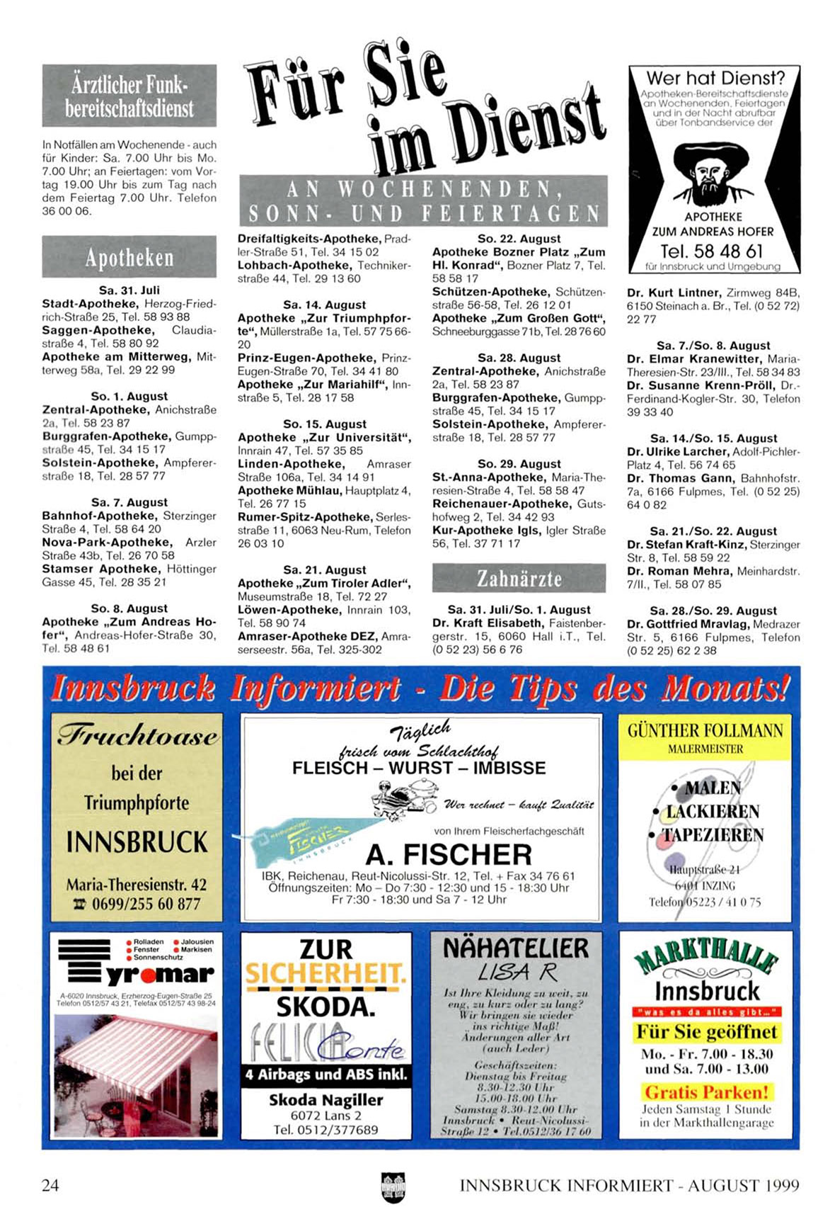 INNSBRUCK INFORMIERT-AUGUST 1999