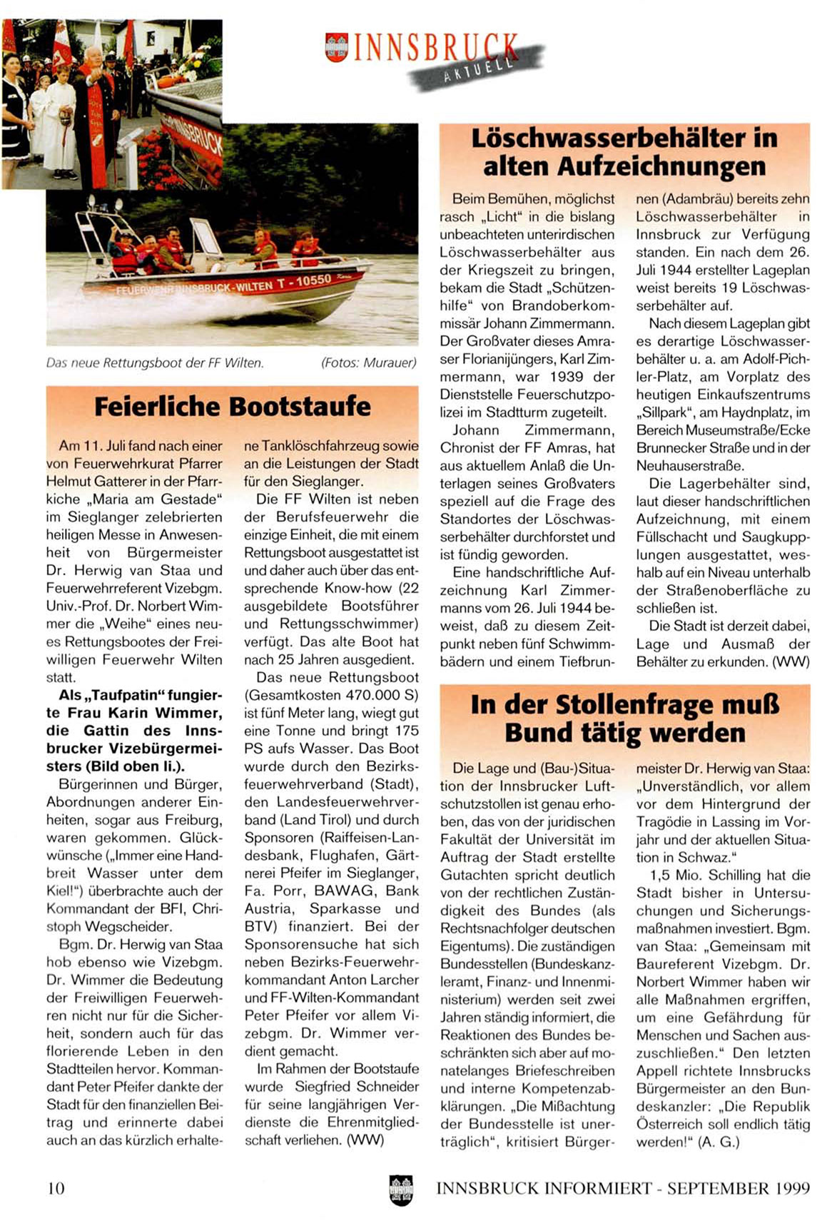 Univ.-Prof. Dr. Norbert Wimmer die „Weihe" eines neues Rettungsbootes der Freiwilligen Feuerwehr Wilten
