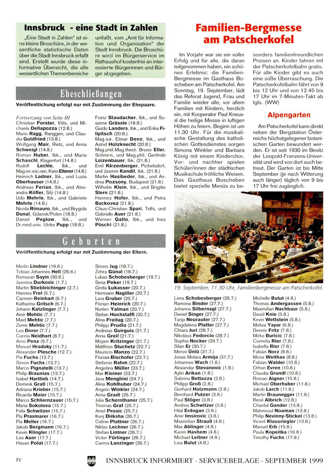 teilgenommen haben, ein schönes Erlebnis: die FamilienBergmesse im Gasthaus Boscheben am Patscherkofel. Am