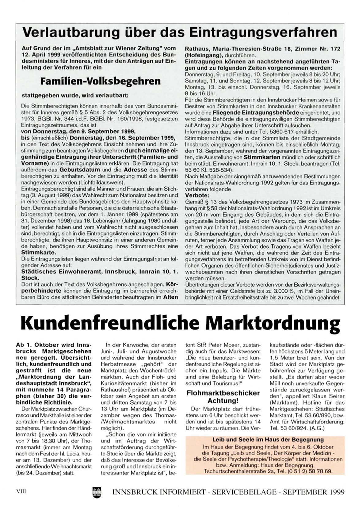 INNSBRUCK INFORMIERT - SERVICEBEILAGE - SEPTEMBER 1999