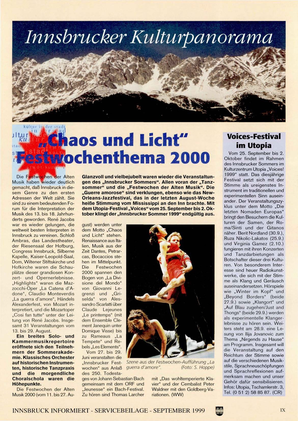 dem Utopia-Festival „Voices" vom 25. September bis 2. Oktober klingt der „Innsbrucker Sommer 1999" endgültig aus.