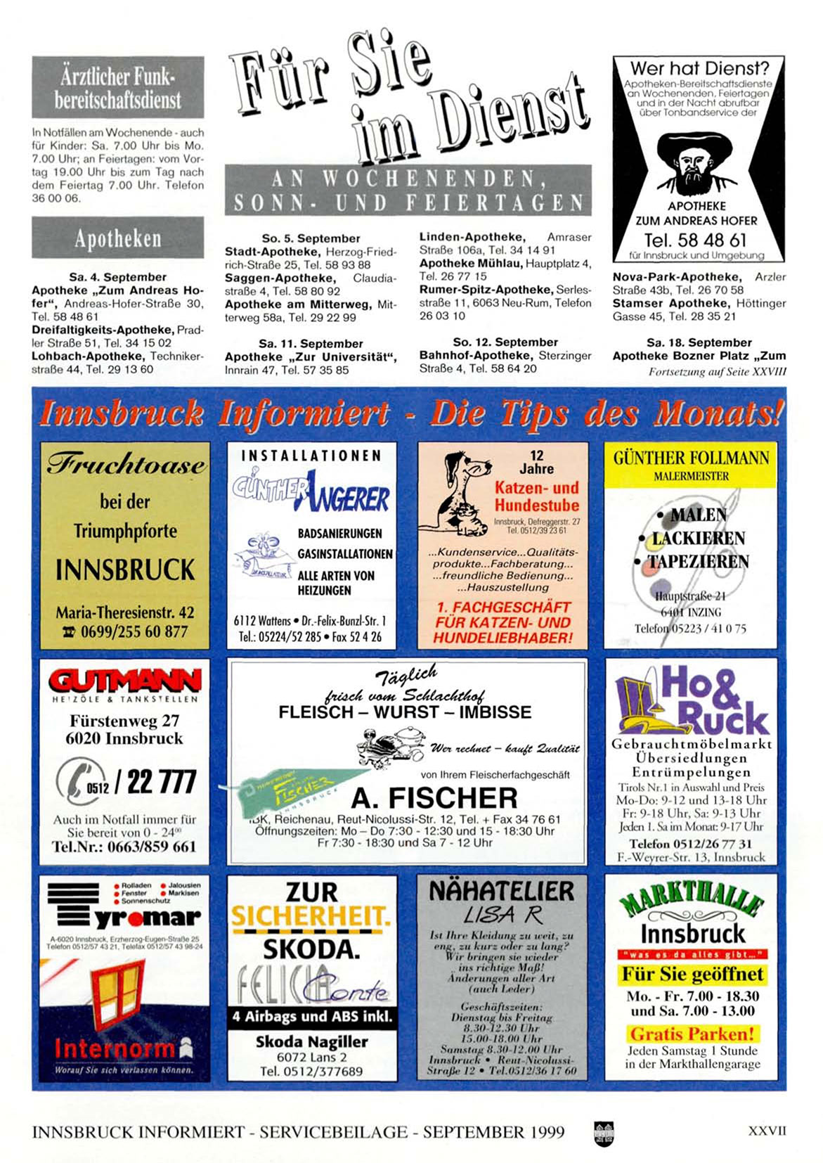 INNSBRUCK INI OKMIIRI - SI.RVICi;m;iLAGL - SEPTEMBER 1999