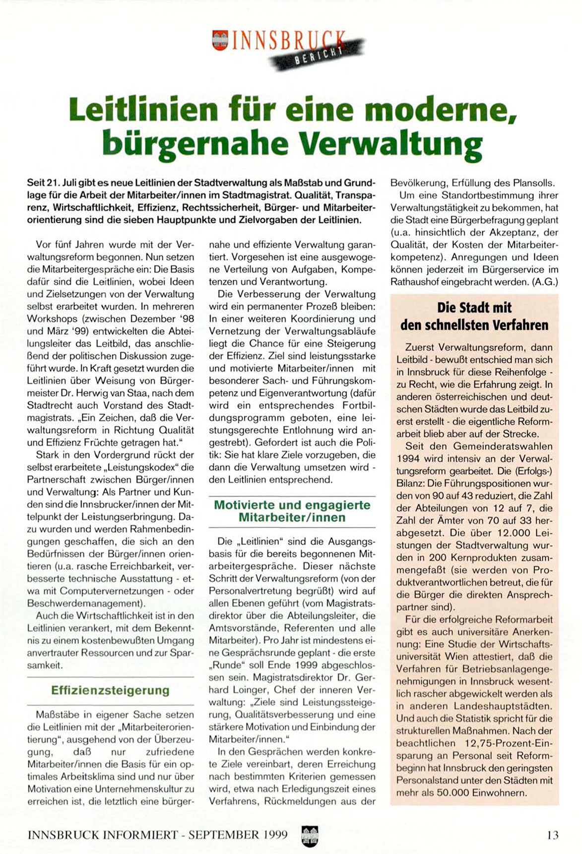 und Verwaltung: Als Partner und Kunden sind die Innsbrucker/innen der Mittelpunkt der Leistungserbringung. Dazu wurden und werden Rahmenbedingungen geschaffen, die sich an den