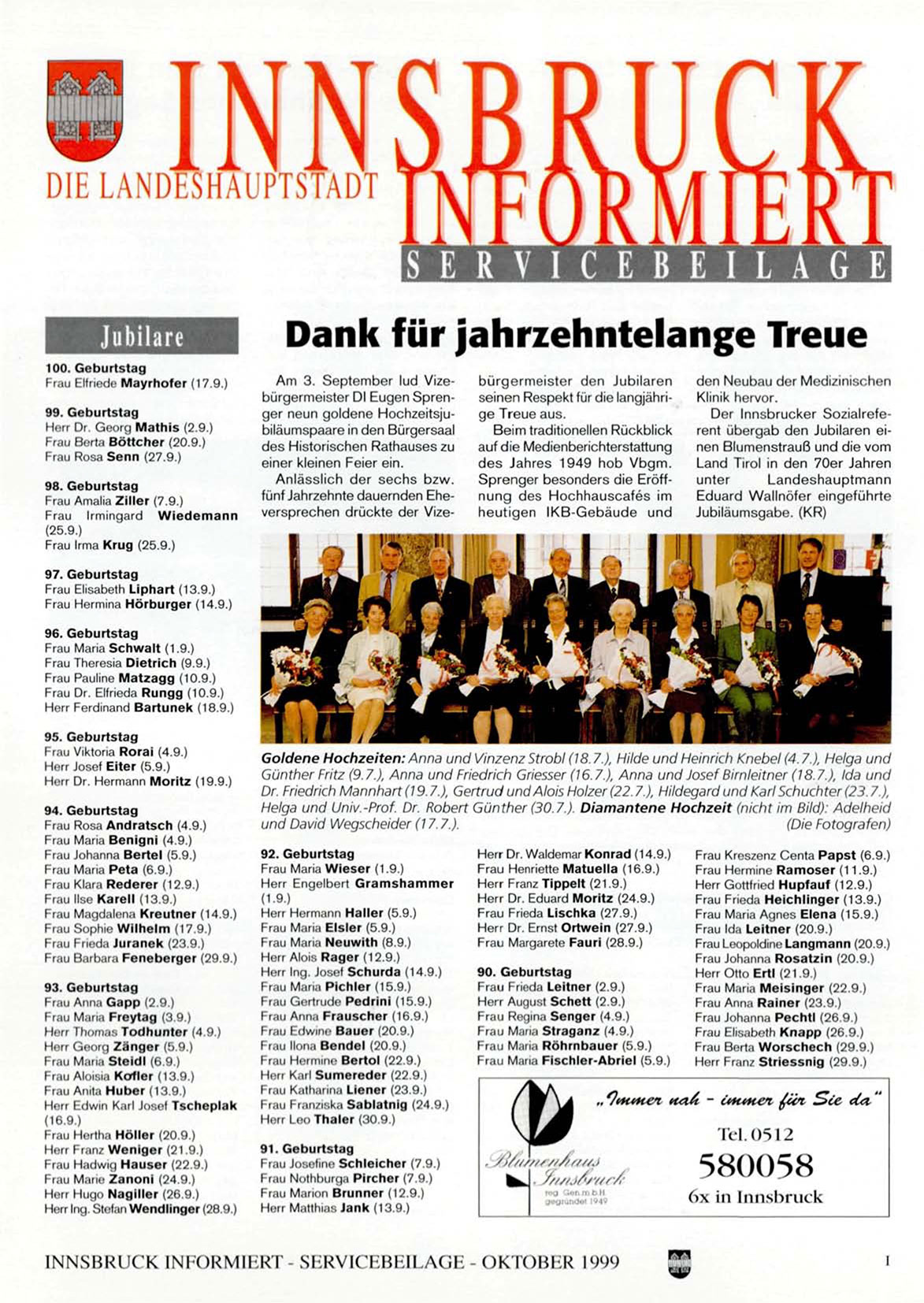 Der Innsbrucker Sozialreferent übergab den Jubilaren einen Blumenstrauß und die vom