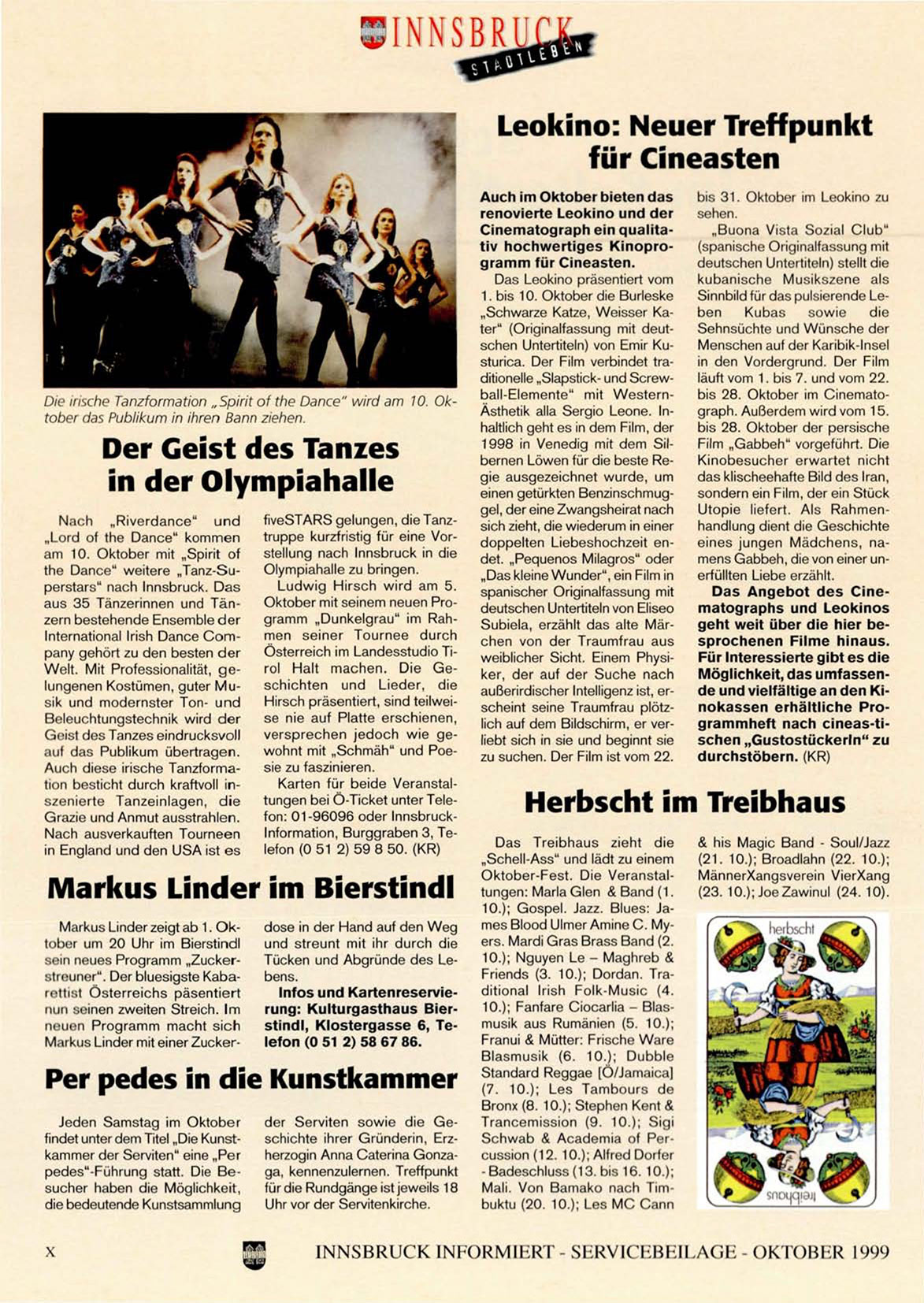 Infos und Kartenreservierung: Kulturgasthaus Bierstindl, Klostergasse 6, Telefon (0 51 2) 58 67 86.