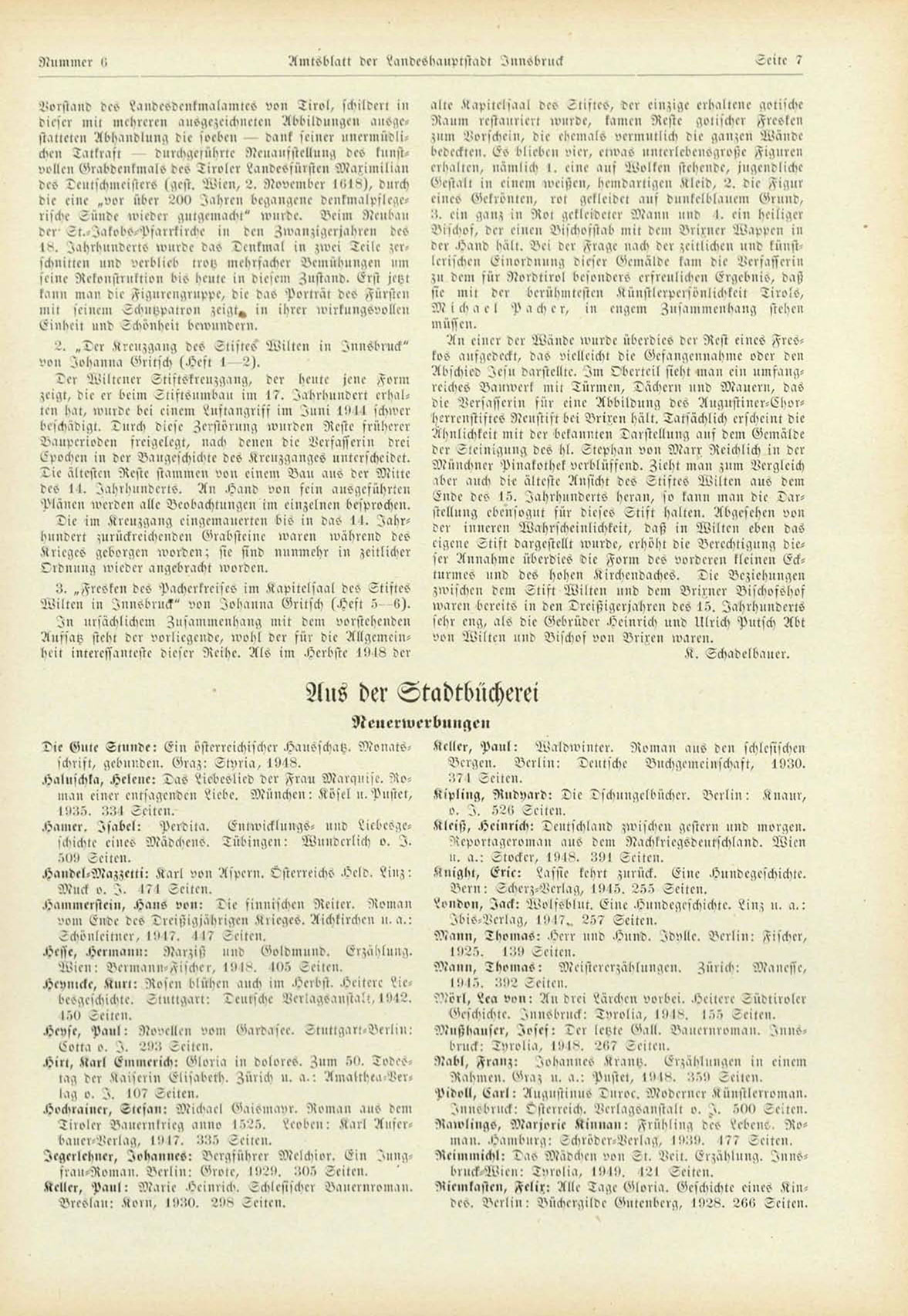 Amtsblatt der Vandesbanptstadt Innsbruck