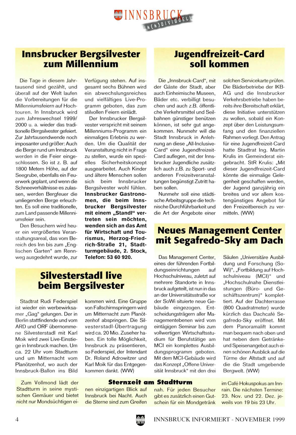 INNSBRUCK INFORMIERT NOVRMBFR 1999