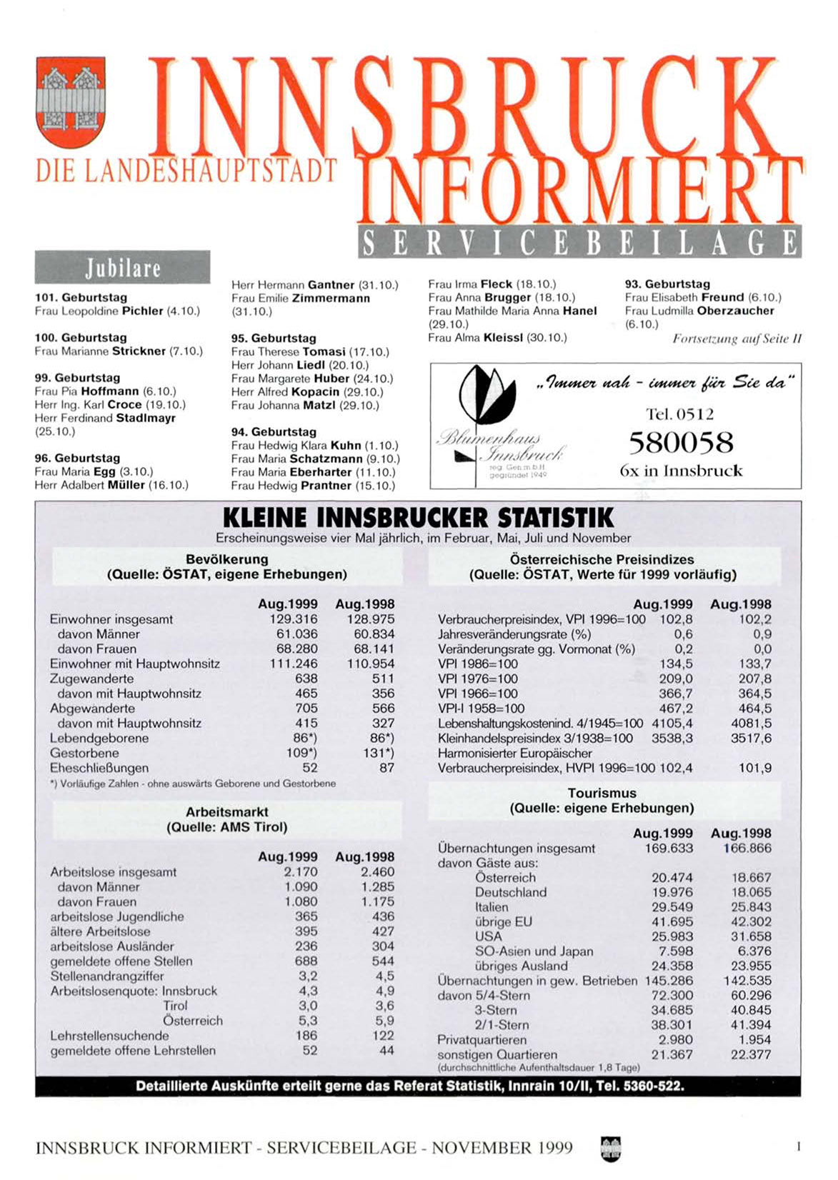 INNSBRUCK INFORMIERT- SERVICEBEILAGE- NOVEMBER 1999