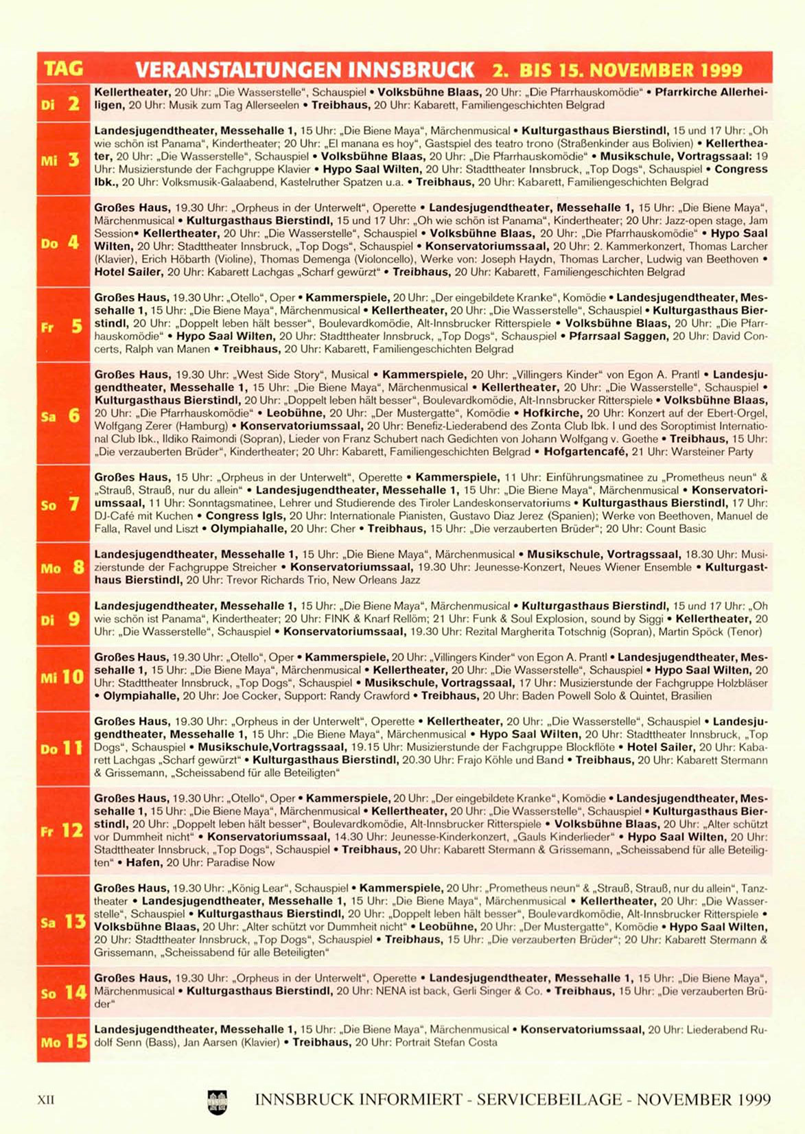 INNSBRUCK INFORMIERT-SERVICEBEILAGE- NOVEMBER 1999