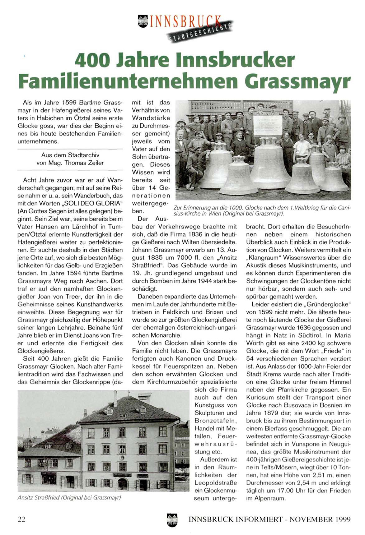 Johann Grassmayr erwarb am 13. Au- tion von Glocken. Weiters vermittelt ein