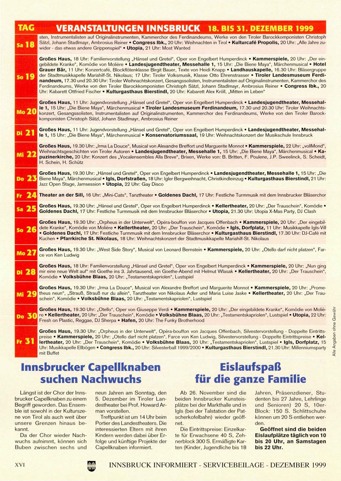 INNSBRUCK INFORMIERT- SERVICEBEILAGE - DEZEMBER 1999