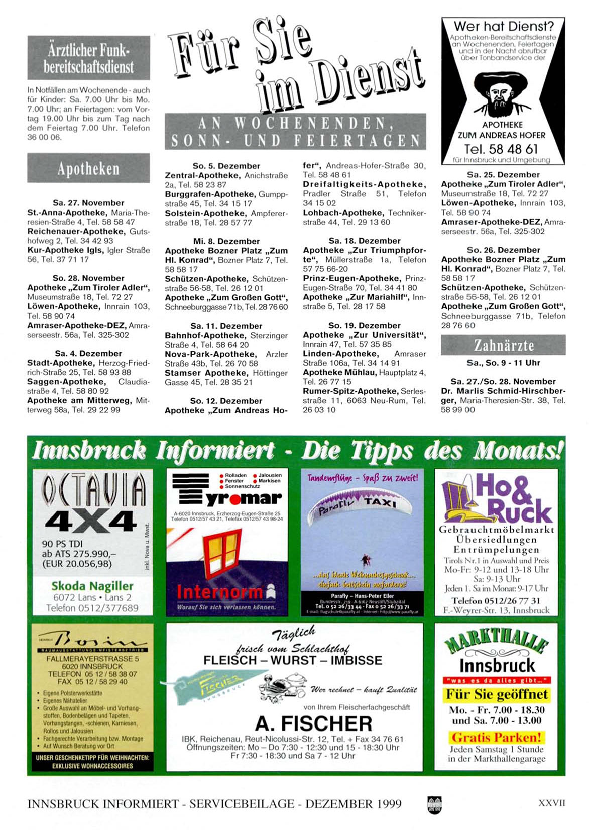 INNSBRUCK INFORMIERT - SliRVICEBEILAGE - DEZEMBER 1999