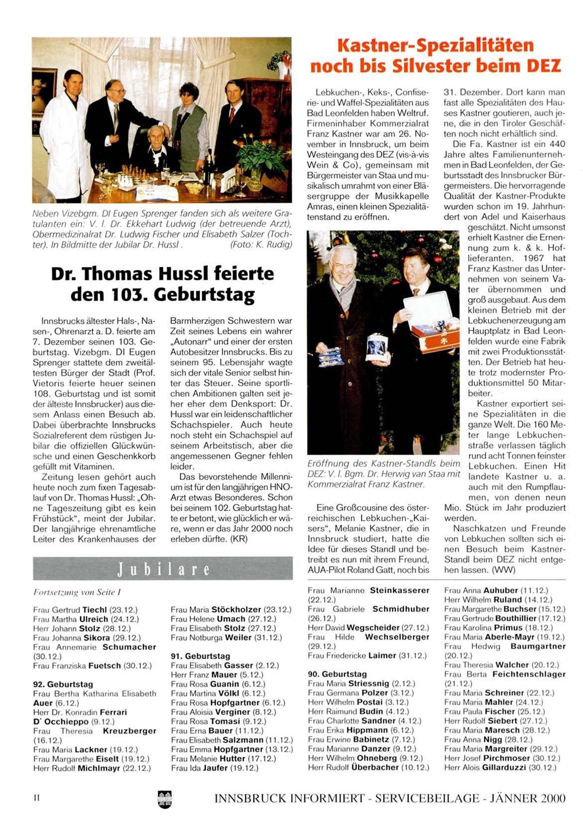 Innsbrucks ältester Hals-, Nasen-, O h r e n a r z t a. D. feierte a m