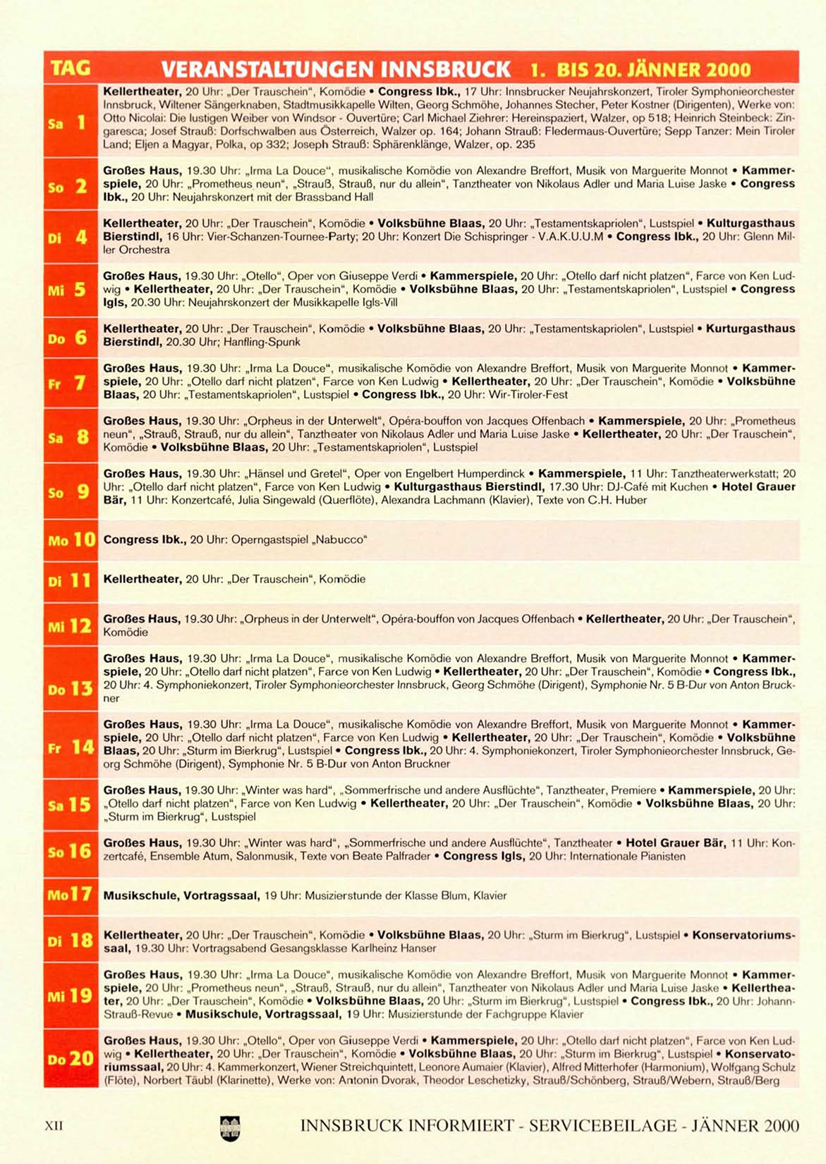 VERANSTALTUNGEN INNSBRUCK 1. BIS 20. JÄNNER 2000