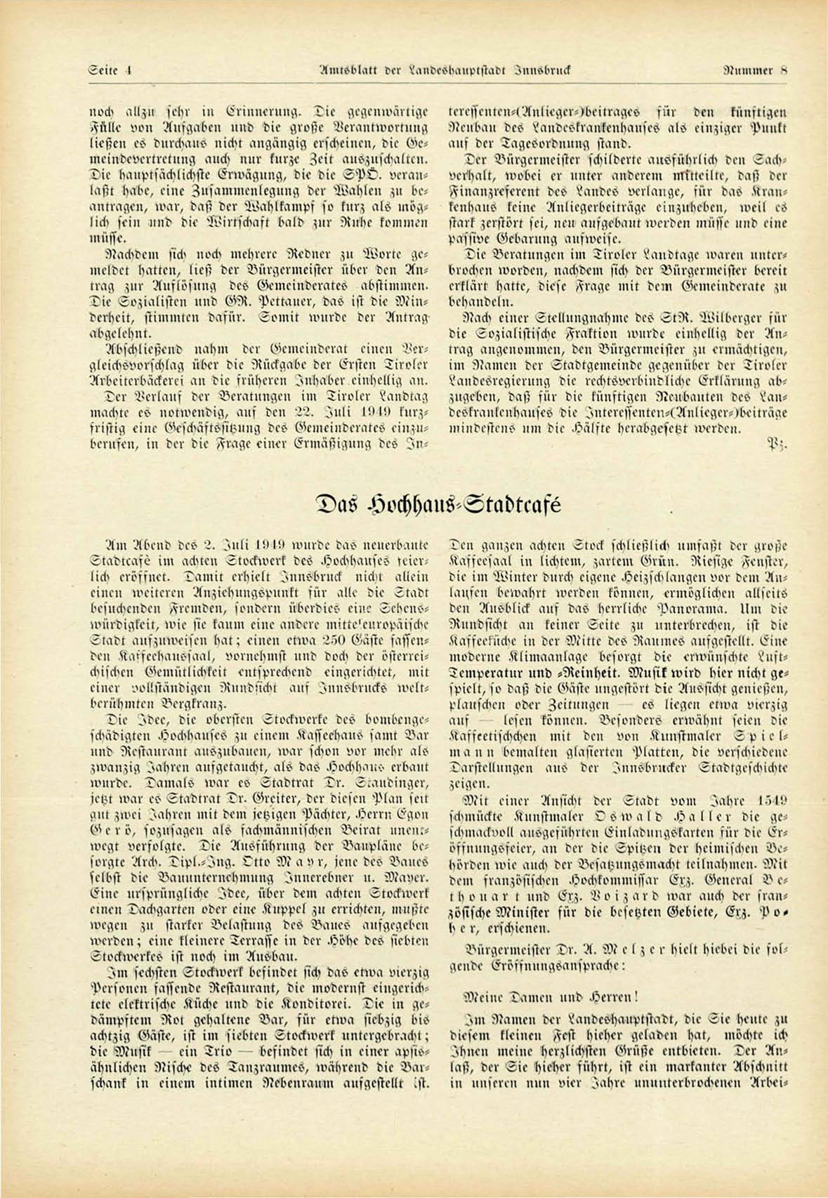 machte es notwendig, auf den 22. I n l i 19 19 kurzfristig eine Geschäftsswnng des Gcmeinderates einzubernfen, in der die ,N"age einer Ermäßigung des I n -