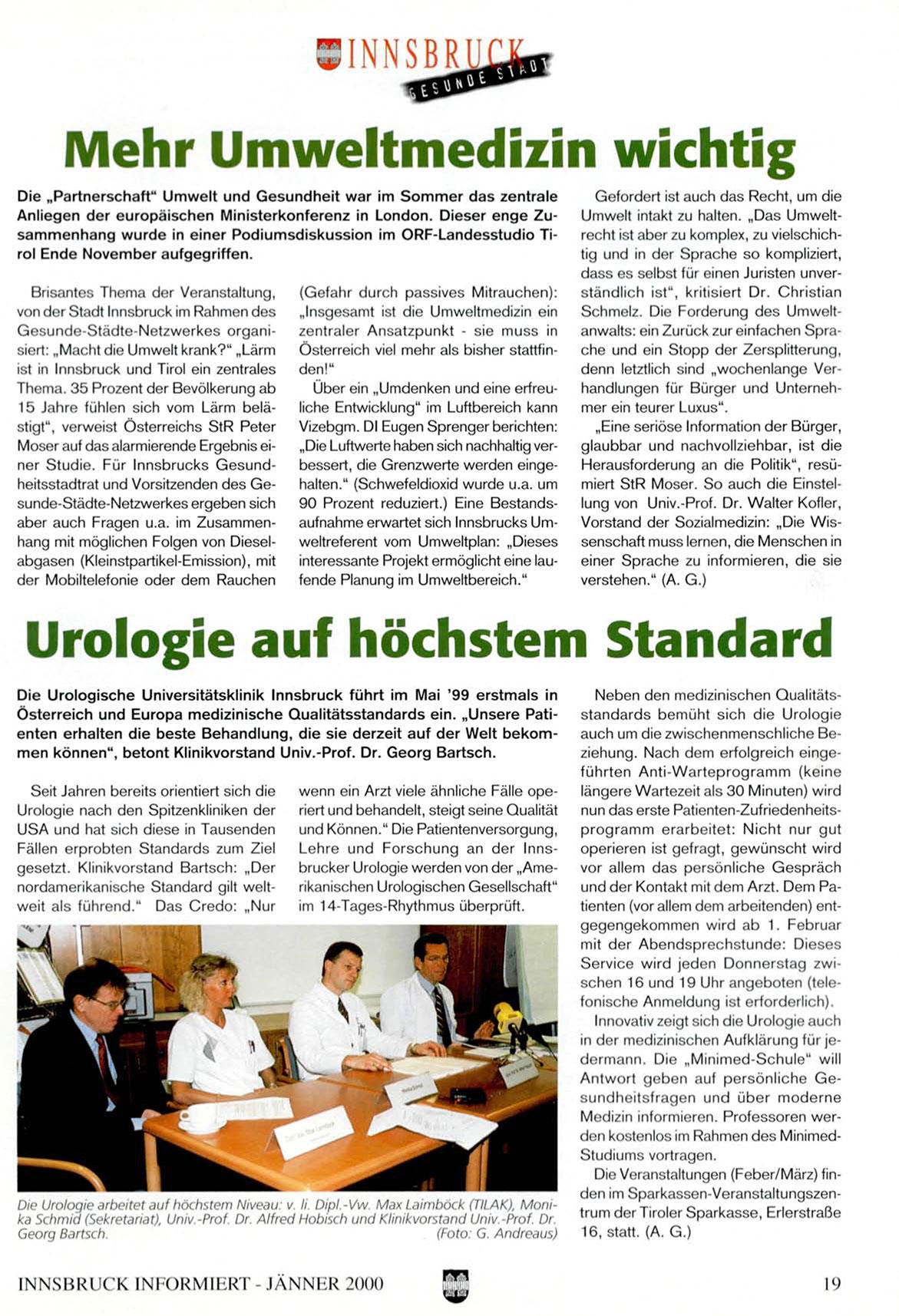 Die U r o l o g i s c h e U n i v e r s i t ä t s k l i n i k I n n s b r u c k f ü h r t im Mai " 9 9 e r s t m a l s in