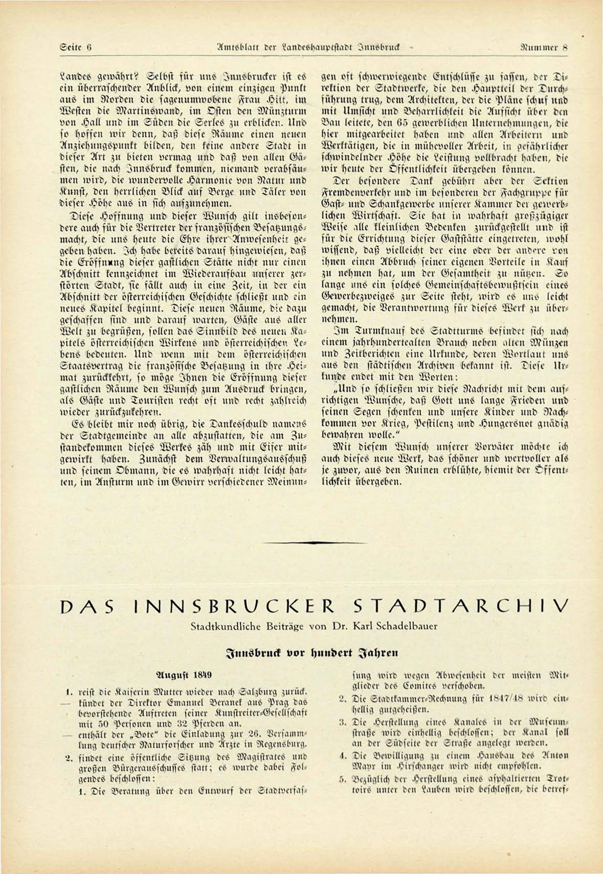 dieser Art zu bieten vermag und daß von allen Gästen, die nach Innsbruck kommen, uiemaud verabsäumen wird, die wundervolle Harmonie von Natur und