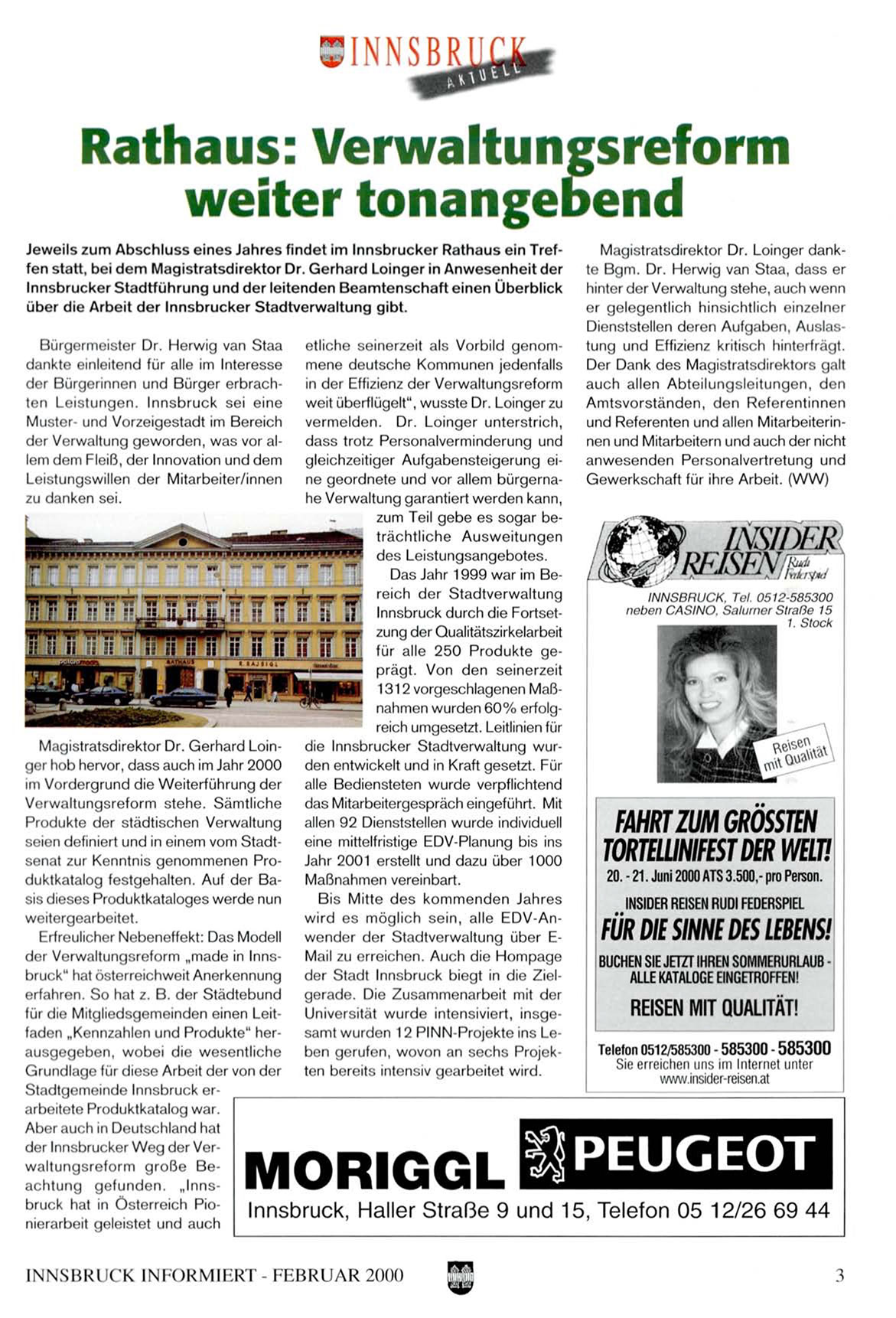 der Innsbrucker W e g der Verwaltungsreform große Bea c h t u n g g e f u n d e n . „Innsbruck hat in Österreich Pionierarbeit geleistet und auch