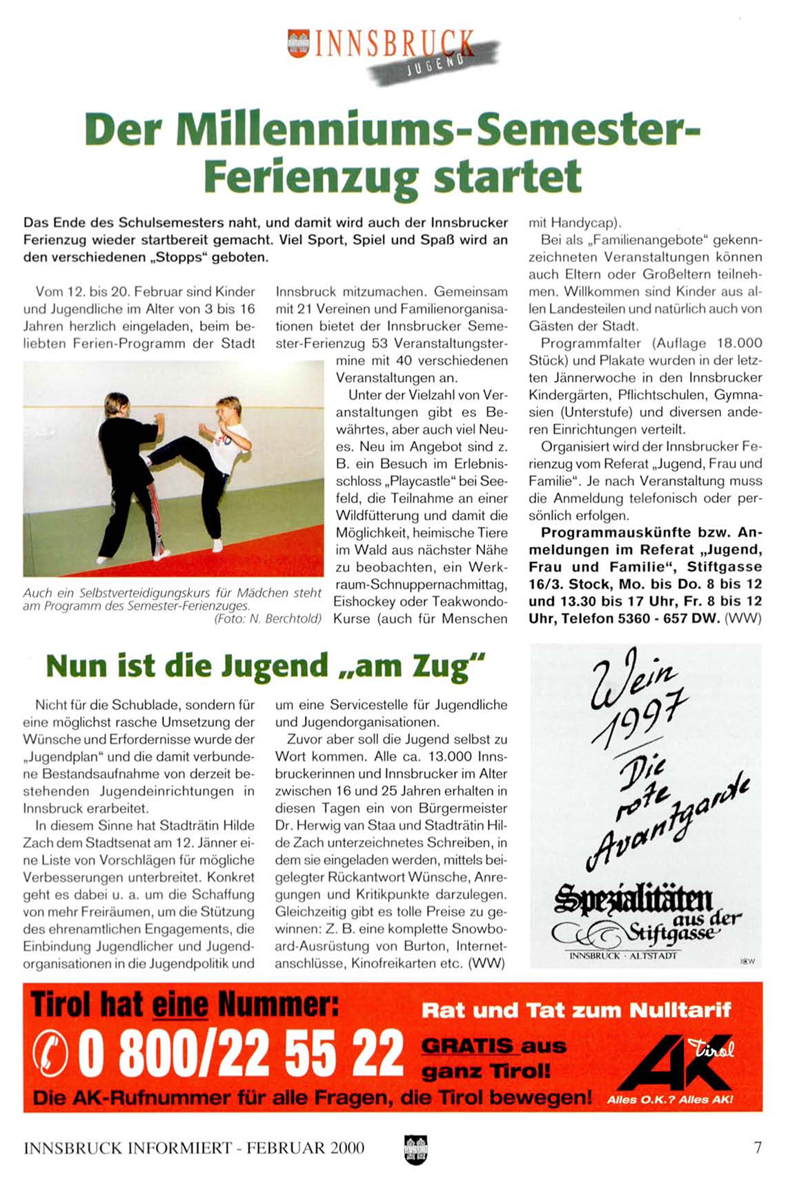 mit 21 Vereinen und Familienorganisationen bietet der Innsbrucker Semester-Ferienzug 53 Veranstaltungstermine mit 40 verschiedenen