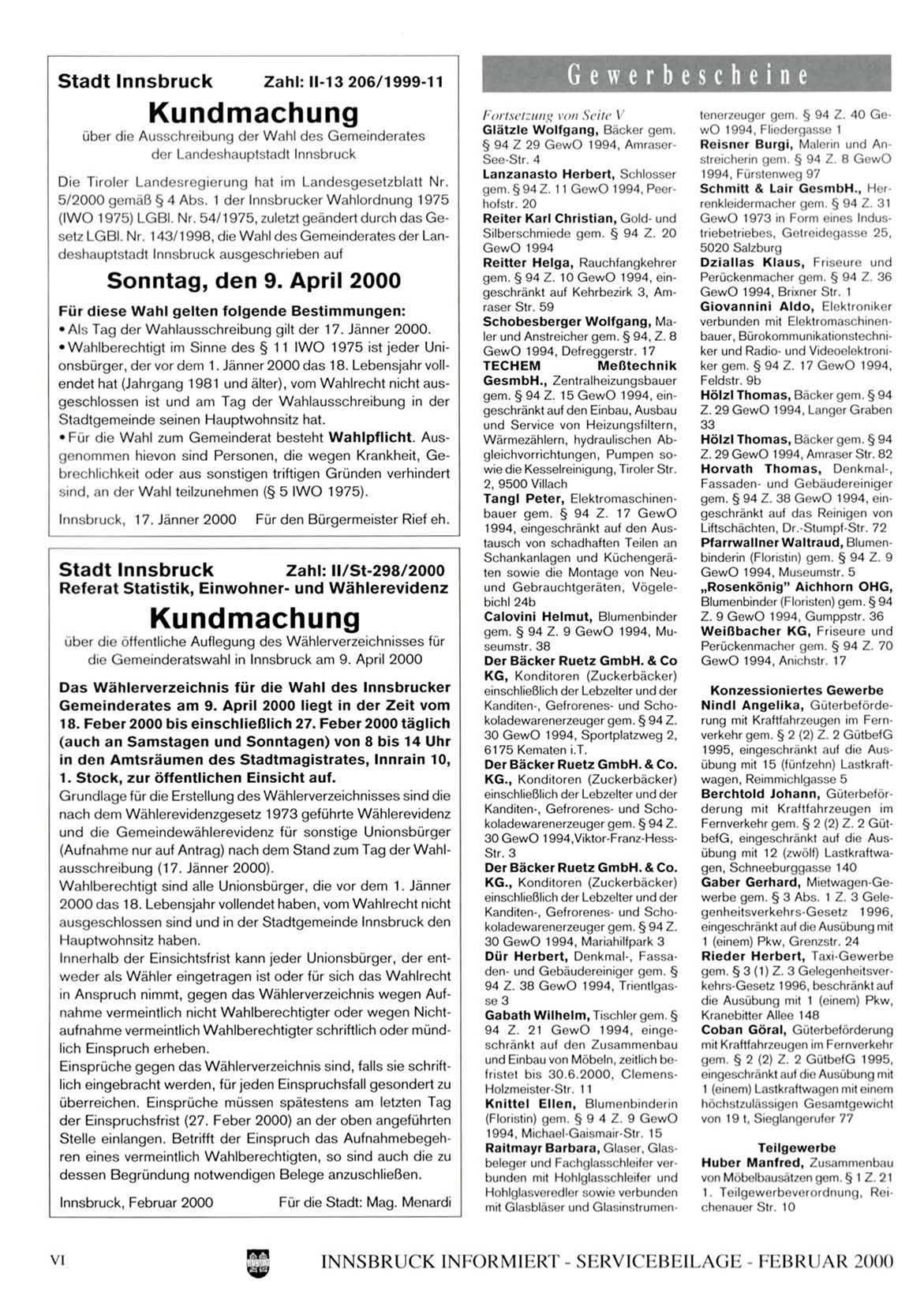 die Gemeinderatswahl in Innsbruck am 9. April 2000