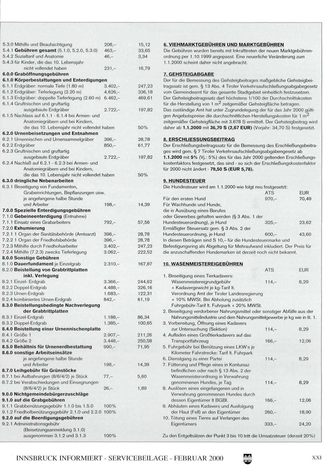 daher ab 1.1.2000 mit 36,70 S (2,67 EUR) (Vorjahr: 34,70 S) festgesetzt.