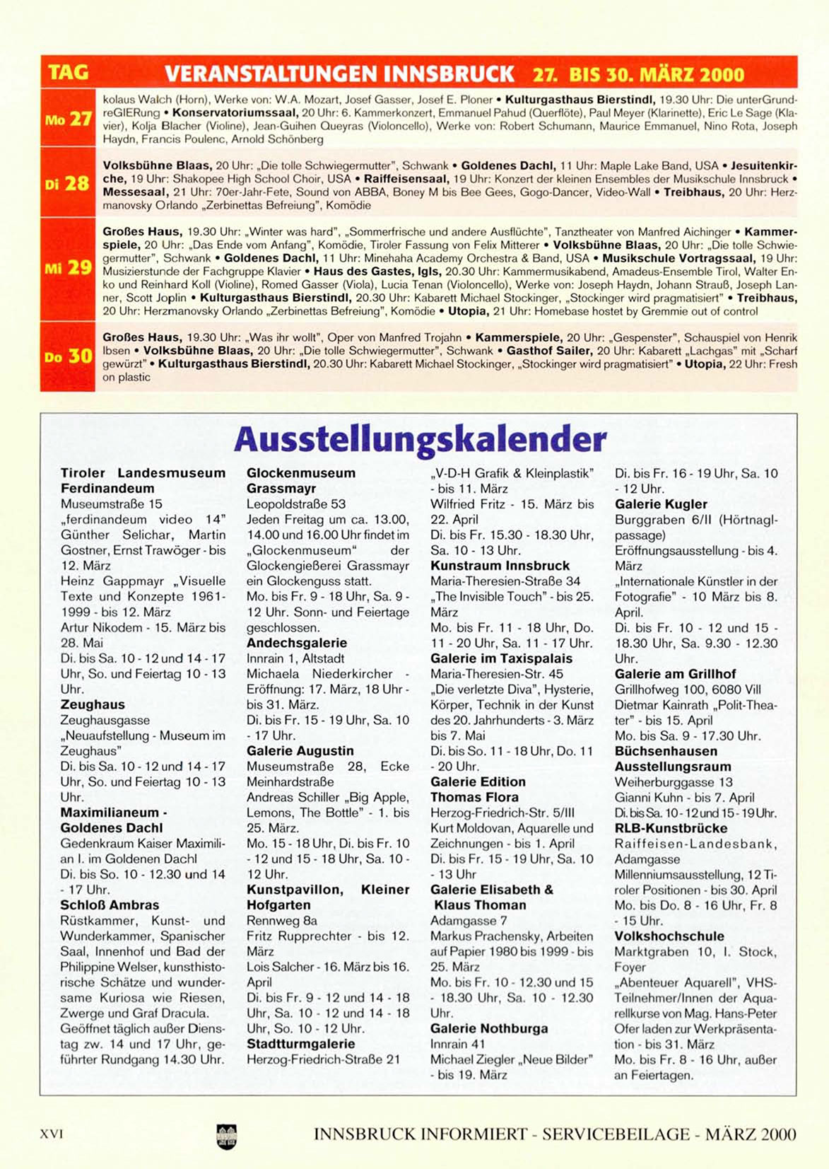 Millenniumsausstellung, 1 2 Tiroler Positionen - bis 30. April