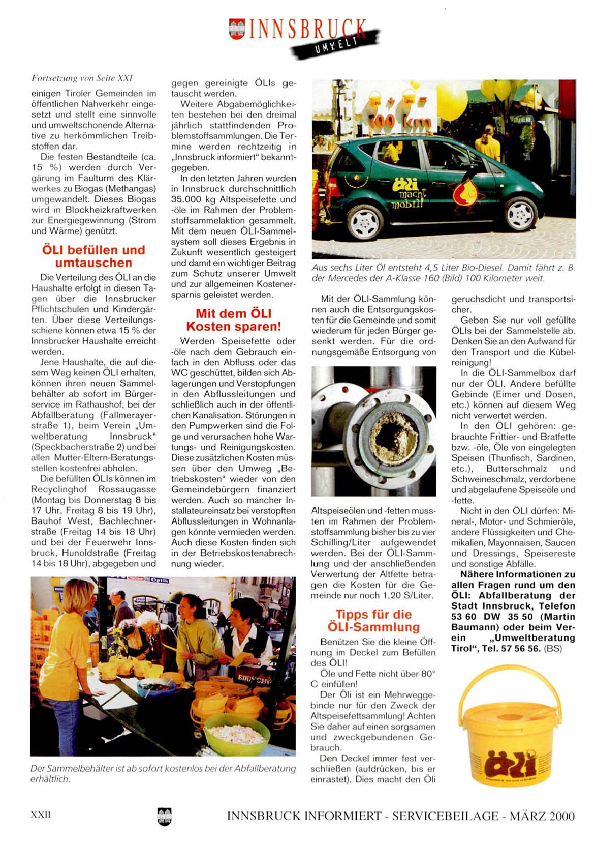 Verwertung der Altfette betragen die Kosten für die Gemeinde nur noch 1,20 S/Liter.