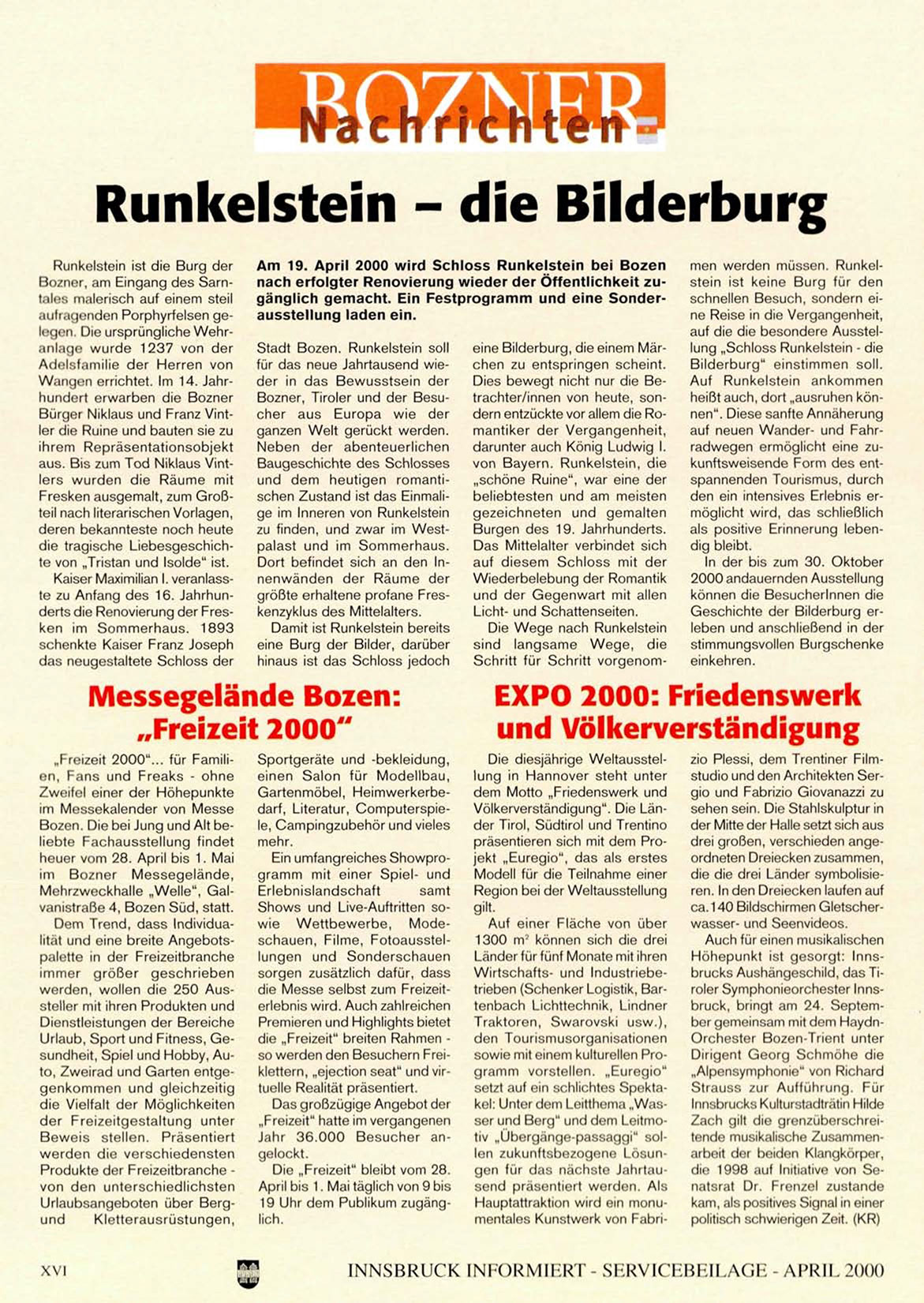 A m 19. A p r i l 2000 w i r d S c h l o s s R u n k e l s t e i n bei B o z e n
