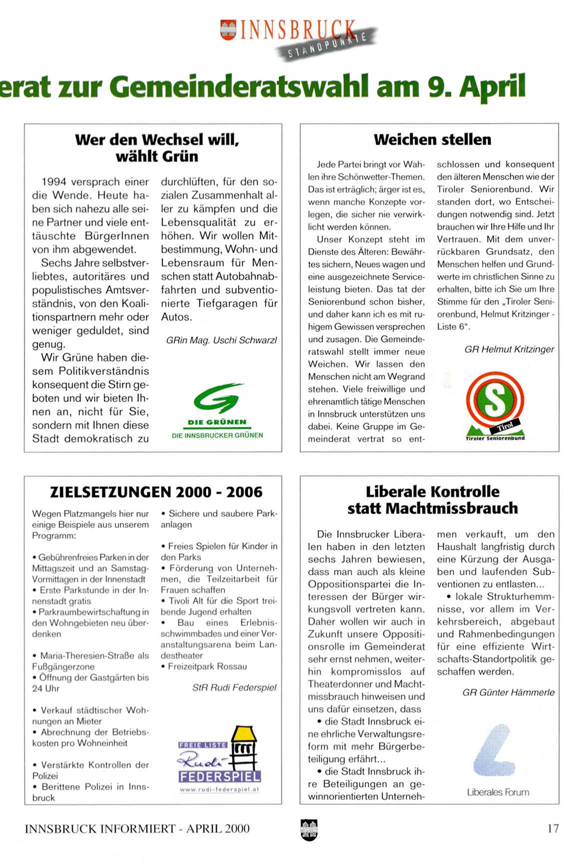 Die Innsbrucker Liberalen h a b e n in d e n letzten