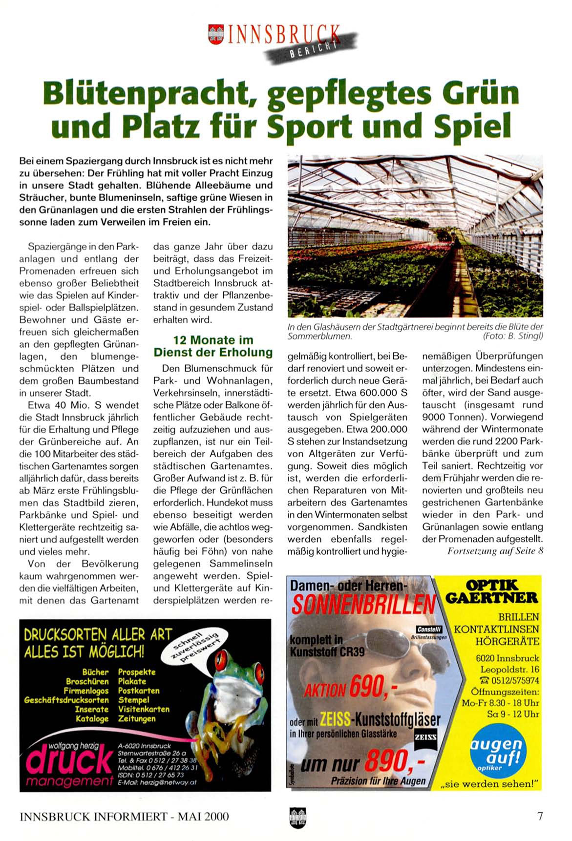 S t a d t b e r e i c h Innsbruck attraktiv und der Pflanzenbestand in g e s u n d e m Zustand
