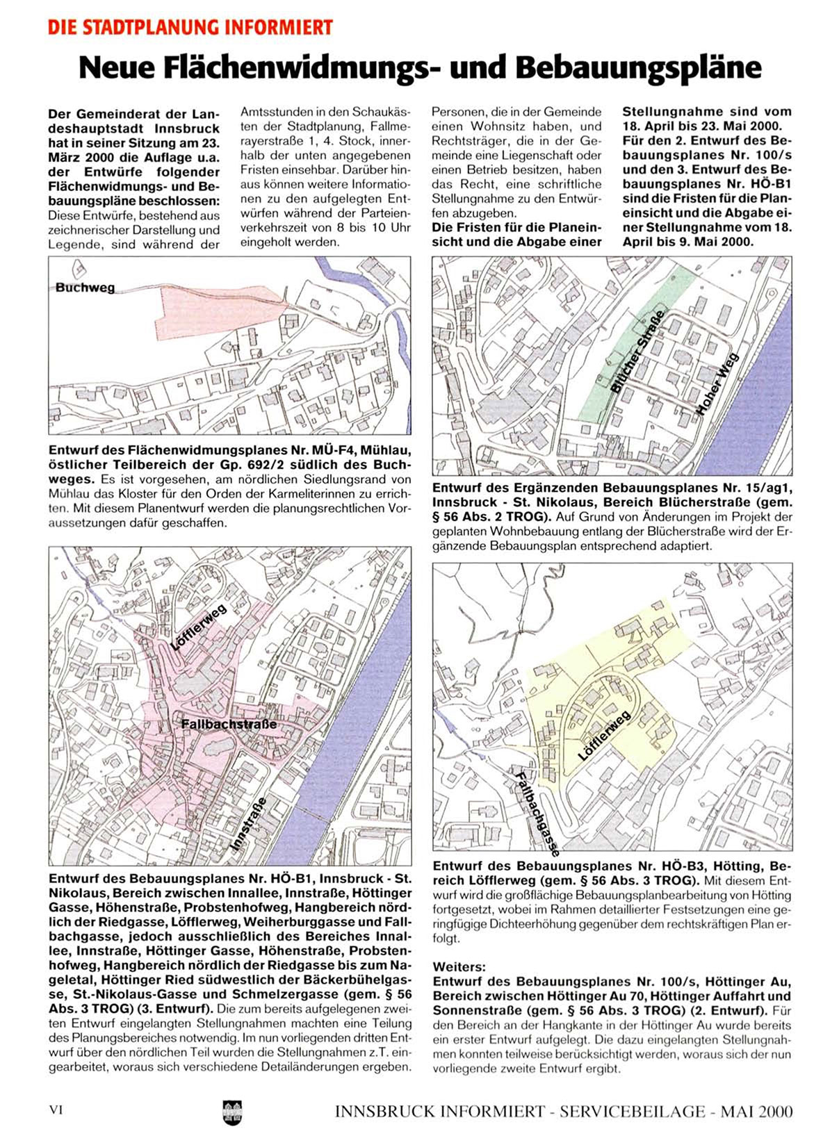 Amtsstunden in den Schaukästen der Stadtplanung, Fallmerayerstraße 1, 4. Stock, innerhalb der unten angegebenen