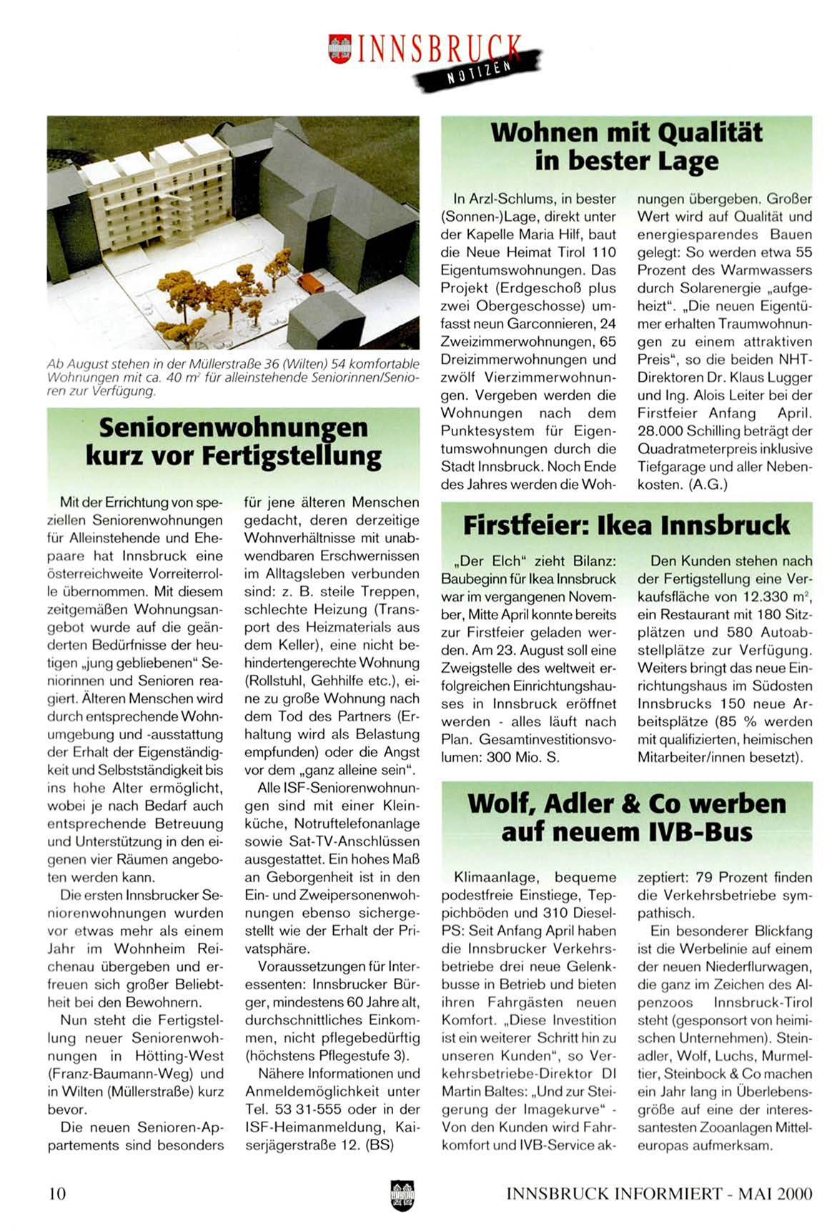 Die ersten Innsbrucker Seniorenwohnungen wurden