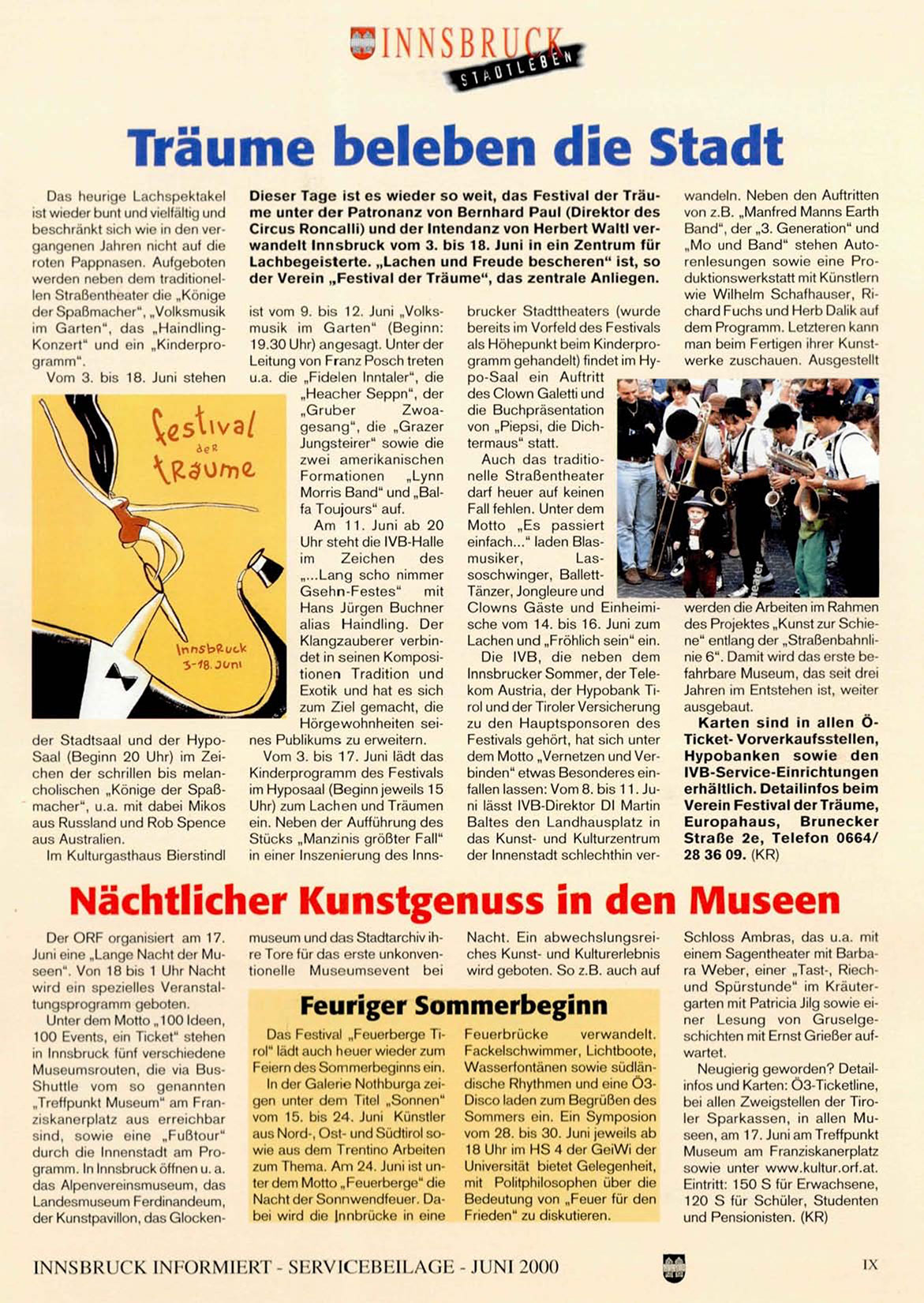 Innsbrucker Sommer, der Telekom Austria, der Hypobank Tirol und der Tiroler Versicherung