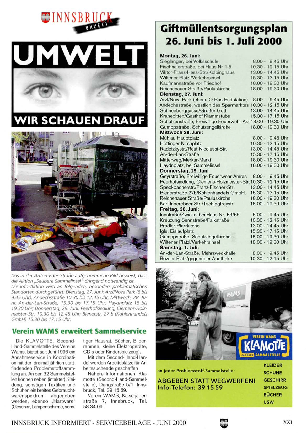 Nähere Informationen: Klamotte (Second-Hand-Sammelstelle), Durigstraße 5 / 1 , Innsbruck, Tel, 39 15 59.