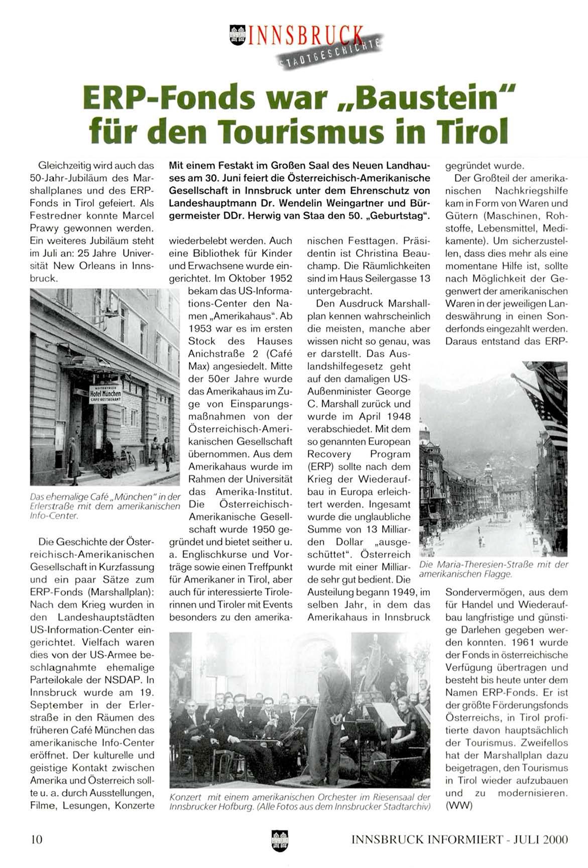 50-Jahr-Jubiläum des Marshallplanes und des ERPFonds in Tirol gefeiert. Als