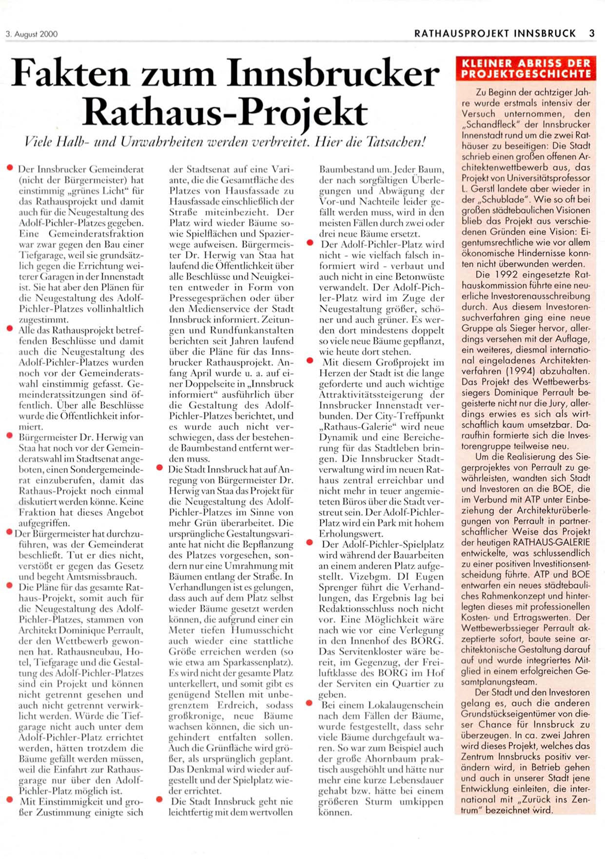 iiher die Pläne für das Innsbrucker Rathausprojekt. Anfang April wurde u. a. auf einer Doppelseite in „Innsbruck
